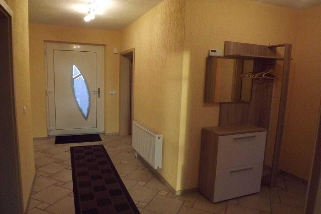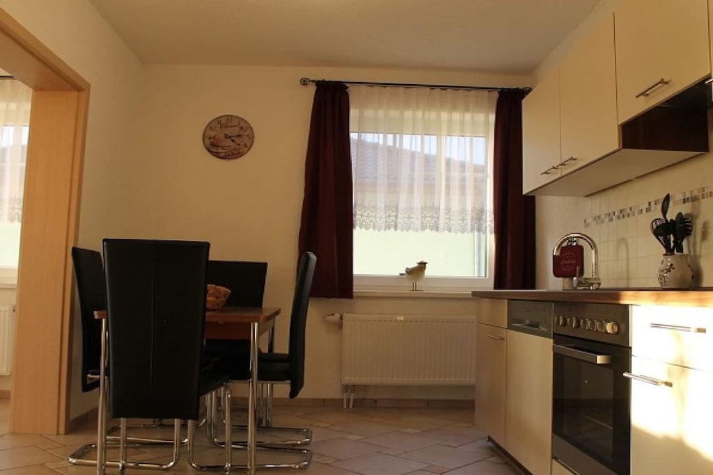 Die Ferienwohnung hat eine Größe von ca. 80 m² und sind für 4-6 Personen geeignet. Haustiere dürfen auf Anfrage für die Ferienwohnung mit in den Urlaub. Die moderne Ferienwohnung sind barrierefrei. Der geräumige Wohn- und Essbereich und die umfangreich ausgestattete Küche mit Geschirrspühler und Cerankochfeld, wird abgerundet durch eine 10 m² große Terrasse in südlicher Richtung. Hier können Sie die frische Landluft in vollen Zügen genießen. Für bequeme Nächte sorgen ein Schlafzimmer mit Doppelbett und ein Schlafzimmer mit zwei Einzelbetten. Der Wohnbereich ist mit einer Couchgarnitur mit Schlaffunktion für zwei Aufbettungen ausgestattet. Unser aktuelle Belegungsplan auf unsere private Homepage