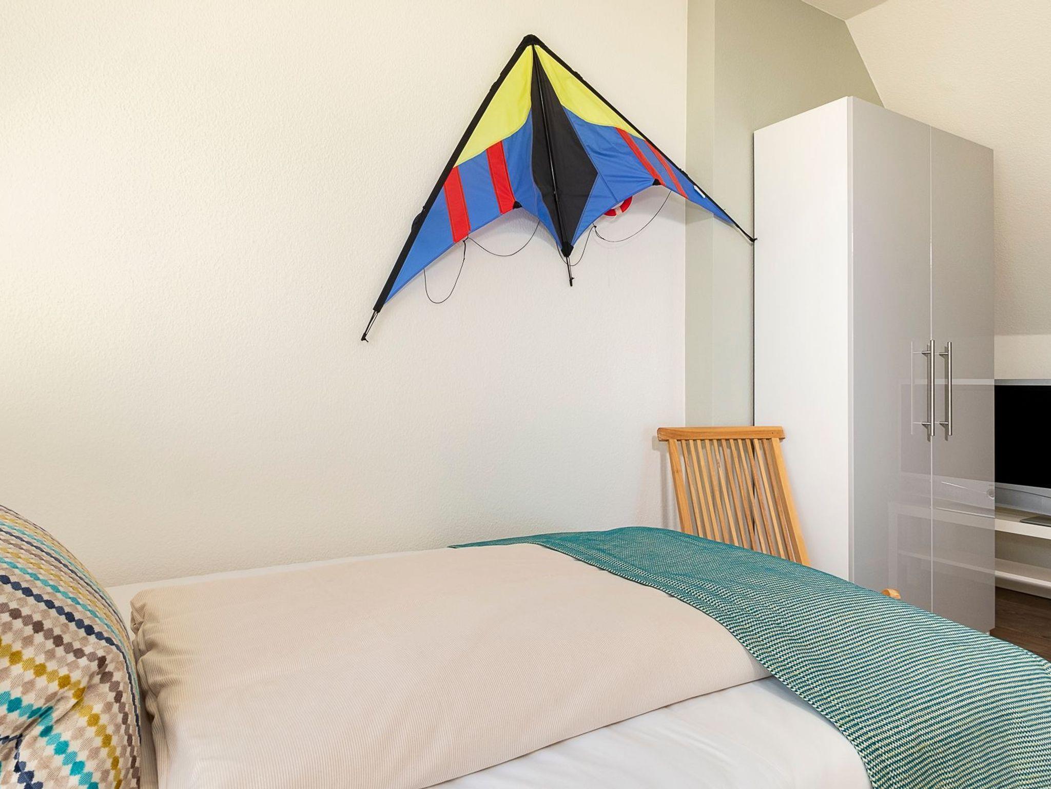 Das Tageslichtduschbad verfügt über eine bodentiefe Dusche und einen großen Waschtisch sowie eine Waschmaschine. Neben der Fußbodenheizung ist hier ein Handtuchheizkörper angebracht. Über eine bequeme Treppe erreichen Sie das Obergeschoss. Hier stehen Ihnen zwei Schlafzimmer zur Verfügung. Das eine Schlafzimmer (mit Ostseeblick) hat ein großes Doppelbett (1,80 x 2,00 m, Einzelmatratzen) mit Komforthöhe, eine große Kommode sowie einen Design-Garderobenständer/Kleideraufhängung und einen Flach-TV. Das zweite Schlafzimmer ist mit einem breiten Bett (1,20 x 2,00m) mit Komforthöhe sowie einem Kleiderschrank und Flachbild-TV ausgestattet. Hier befindet sich auch das großzügige Tageslicht-Gäste-WC mit einem Waschtisch.