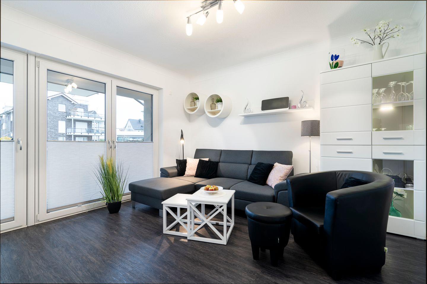 Stylisches Strandhaus Möwenberg App. 11, nur 300 m vom Strand in Scharbeutz, mit moderner Ausstattung und eigener Terrasse.