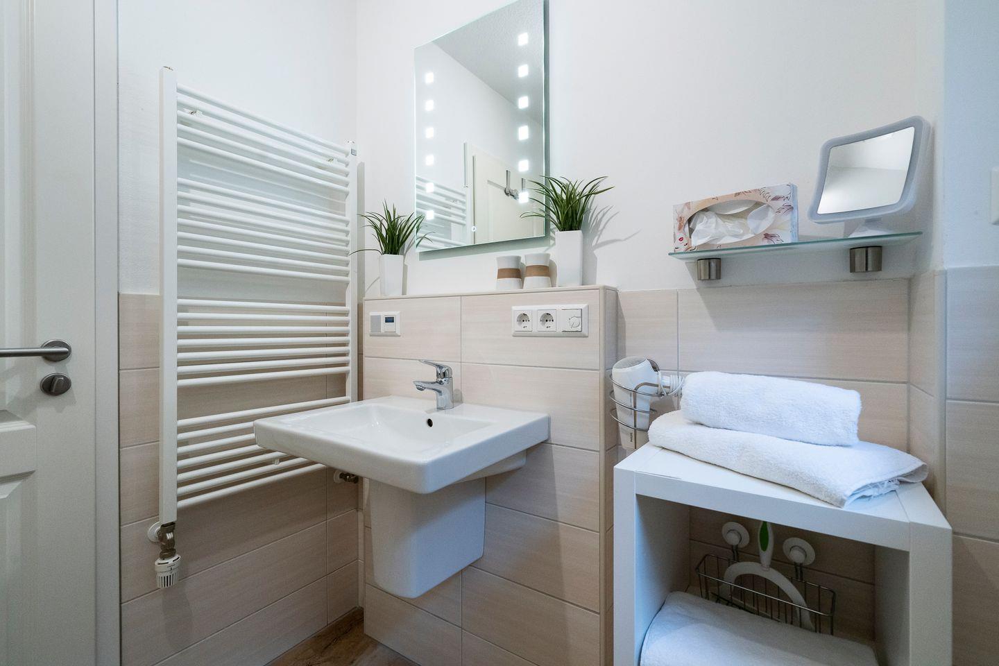 Ankommen und wohlfühlen – die Betten sind bei Eurer Anreise bereits frisch bezogen und Handtücher liegen bereit. Das Wäschepaket umfasst pro Person zwei Handtücher und ein Duschtuch sowie einen Duschvorleger und ein Geschirrhandtuch pro Wohnung. Das Wäschepaket ist automatisch im Buchungspreis enthalten.
