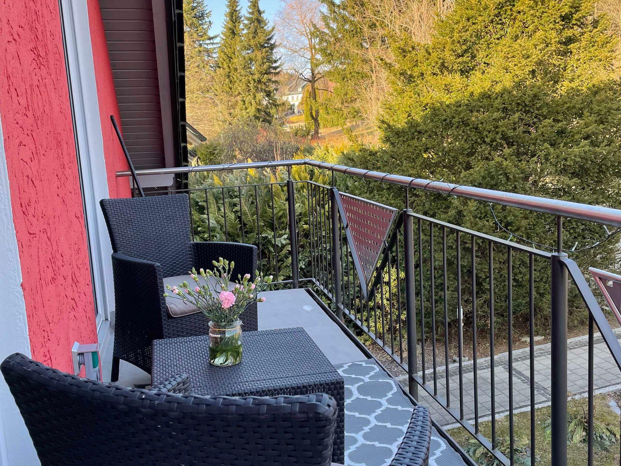 Egal ob Sie auf dem Balkon zur Ostseite frühstücken wollen, oder doch lieber auf der überdachten Loggia (Süd-West), dass ist Ihre Entscheidung. Da in dieser Ferienwohnung keine Terrasse zur Verfügung steht, können Sie unseren 1200qm großen Garten mitbenutzten.