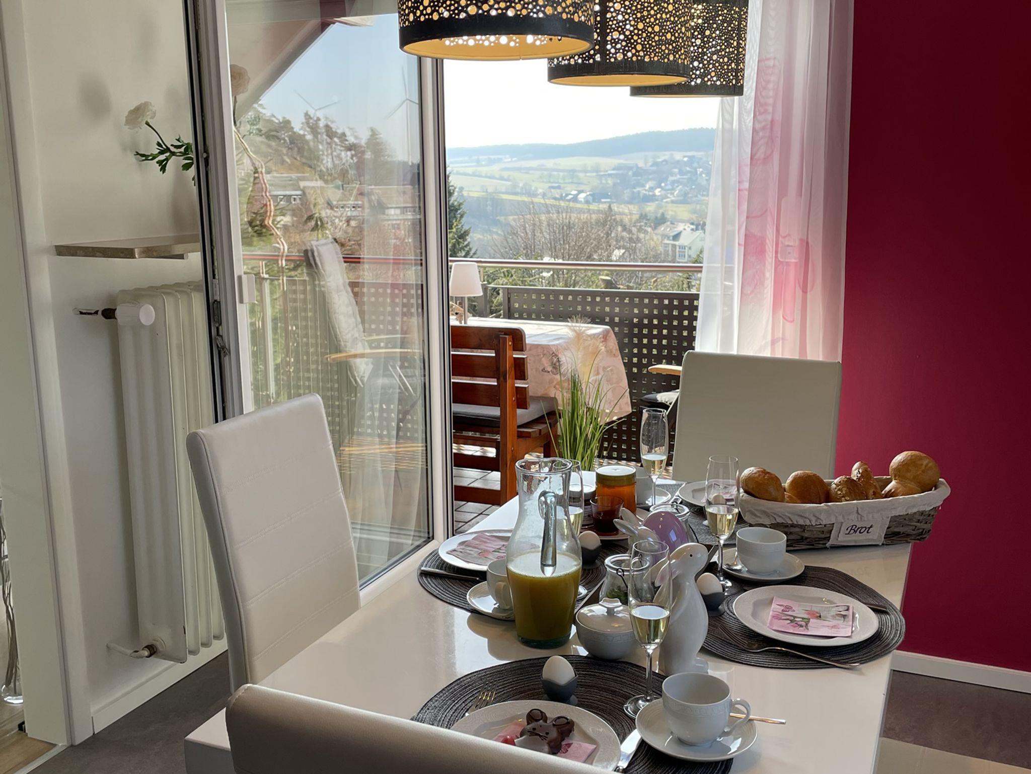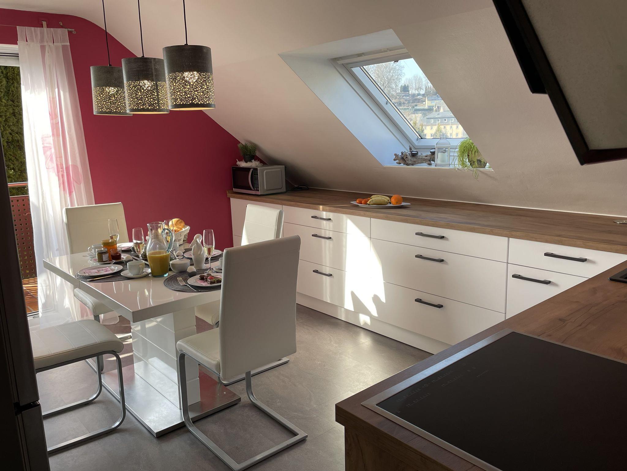 Wir bieten Ihnen in Schauenstein zwischen Frankenwald/Bad Steben und Fichtelgebirge eine außergewöhnlich hochwertig ausgestattete 100m² Ferienwohnung mit einer Loggia und einem Balkon im Obergeschoss, sowie ein großer Garten.