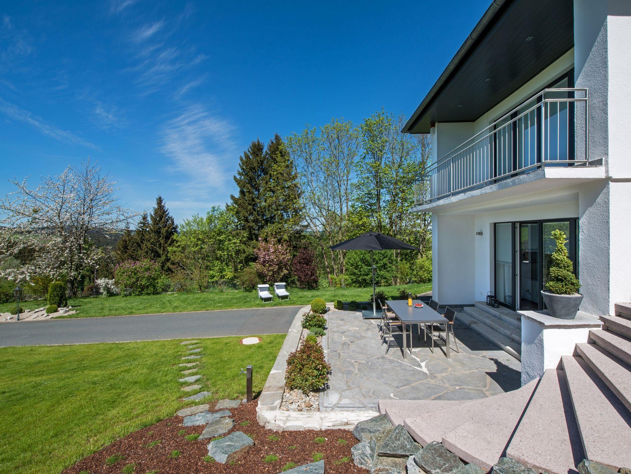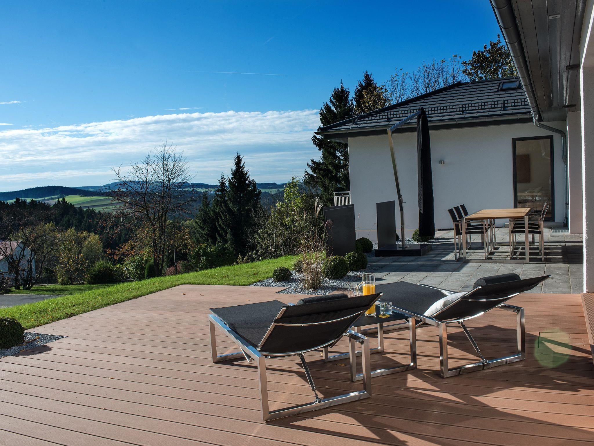 Genießen Sie Ihren Urlaub in einem absoluten Traumdomizil, das sicherlich zu den hochwertigsten Ferienwohnungen in Nordbayern zählt! Die View & Garden Villa Schauenstein empfängt Sie mit einem wunderschön gelegenen Hanggrundstück, einem alten Baumbestand und traumhaften Ausblicken auf den Frankenwald. Die 260 m²-Luxus-Ferienwohnung bietet Ihnen alles, was Sie sich von einer stilvollen Erholungspause vom Alltag erwarten: Exklusivste technische Ausstattung mit WLAN, 4 Kabel-TV, DVD-/Blu-ray-Player, CD-Player, Multi-Room-Soundsystem, Fußbodenheizung, Klimaanlage und elektrische Verdunkelungsjalousie im Master Bedroom einerseits, aber auch Wohlfühlatmospäre durch lichtdurchflutete Räume, STEINWAY-Flügel, 160 m²-Sonnenterrasse mit Esstisch mit 8 Stühlen, Lounge-Sitzgruppe (DEDON), zwei Sonnenschirme, zwei Sonnenliegen, parkähnlicher Garten und einzigartiger Fernblick andererseits. Garagenstellplatz, ein Kfz-Stellplatz vor der Garage sowie ein Kfz-Stellplatz vor dem Haus.