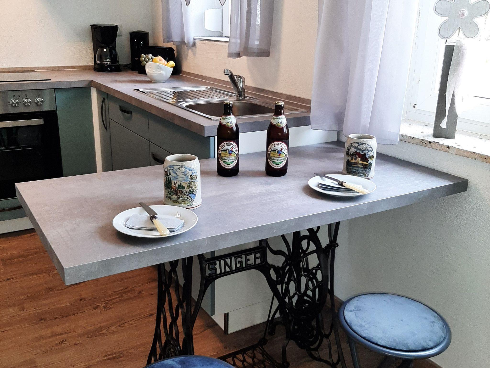 Unsere Ferienwohnung MORITZ ist ca. 65 qm groß und befindet sich im Erdgeschoss unseres Hauses. Sie wurde seniorengerecht gestaltet und besteht aus einer sehr gut ausgestatteten Küche mit Essbereich, einem Wohnzimmer, zwei Schlafzimmer (Bettengröße: 180x200 cm und 140x200 cm), einem Badezimmer mit ebenerdiger Dusche und einer möblierten Terrasse mit Blick auf die Giechburg.