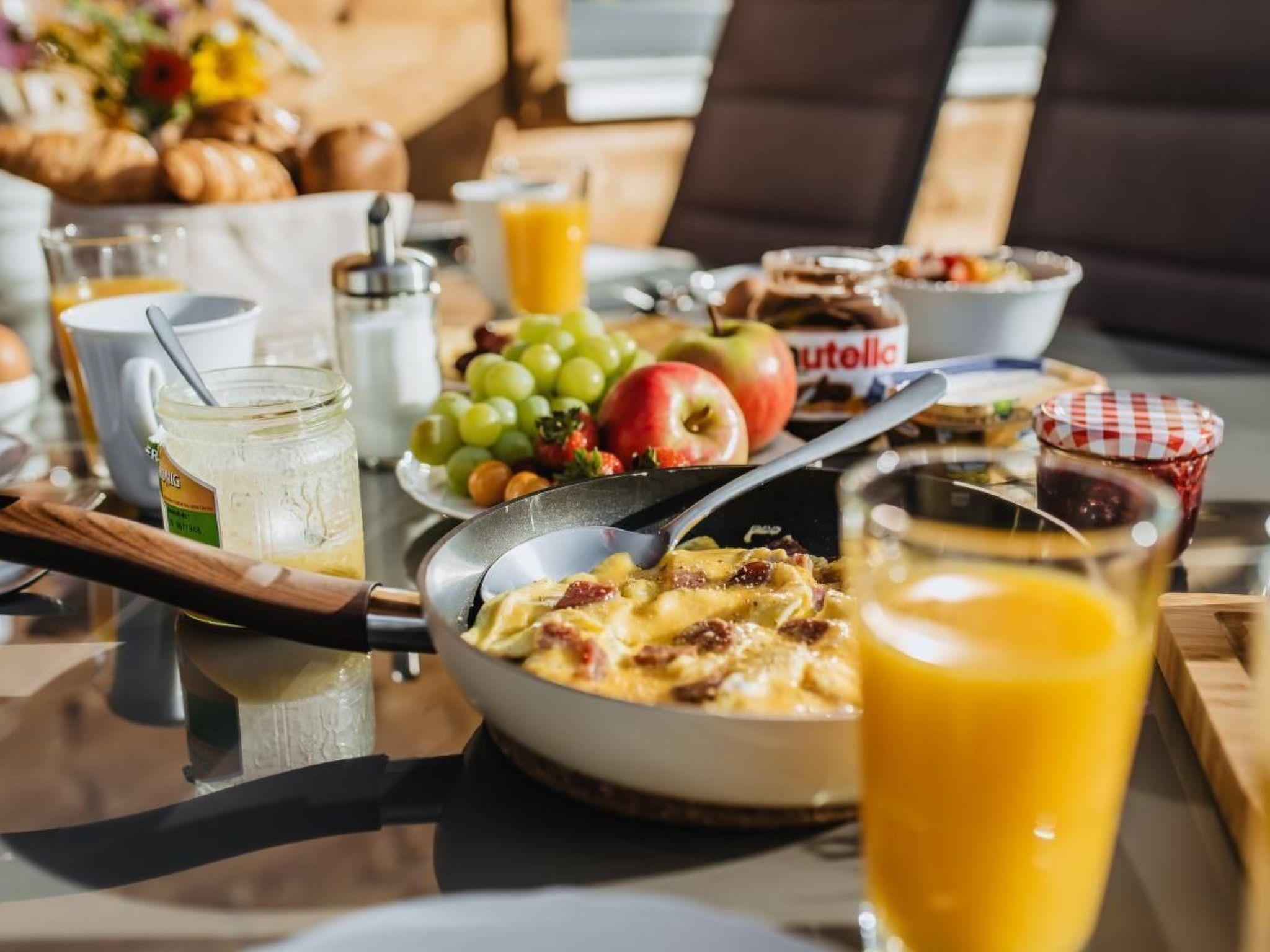 Am massiven Eicheneßtisch ist Platz für tolle gemeinsame Essen oder Spieleabende. Der riesige Balkon und die große Terrasse laden ein zum Frühstücken usw. Grill, Waschmawchine und ein separater Kühlschrank für Getränke sind vorhanden. Es gibt einen zusätzlichen abschließbaren Raum z.B. für Elektrofahrräder.