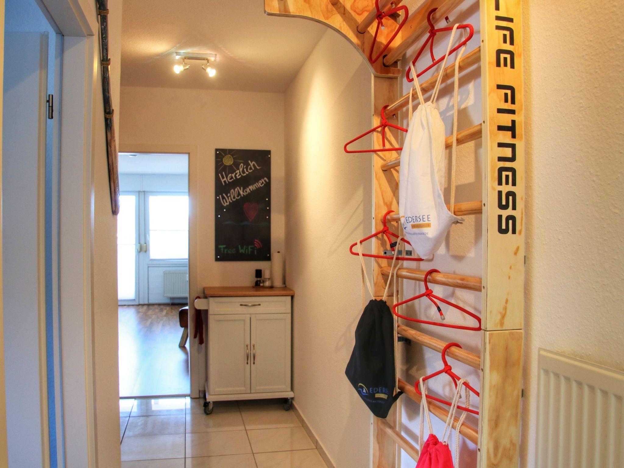 Unsere komfortable und modern eingerichtete Ferienwohnung befindet sich in einer Wohnanlage am Ortsbeginn der ruhigen Halbinsel Scheid in Waldeck. Die Wohnung über rund 60m2 befindet sich im Erdgeschoss und ist über zwei Stufen leicht erreichbar und eignet sich für eine Belegung mit 2 Personen optimal. Für erholsame und abwechslungsreiche Urlaubsaktivitäten, ist die Wohnung ein idealer Ausgangspunkt. In nur wenigen Gehminuten erreichen Sie das Ost-oder Westufer der Halbinsel. Hier können Sie die Möglichkeit zum Schwimmen am Badestrand oder von unserem Bootssteg aus nutzen. Um den See vom Wasser aus zu erkunden, bieten wir Ihnen für Ihren Aufenthalt die Möglichkeit gegen eine zusätzliche Gebühr unser Kanu/Kanadier oder zwei Stand Up Paddle Boards (SUP) zu mieten.All diejenigen, die Flora und Fauna zu Fuß erkunden möchten bietet sich nach wenigen Schritten der Einstieg über den Knorreichenstieg in den Nationalpark Kellerwald-Edersee. Über die verschiedenen Wander-und Radwege können Sie die Region rund um den Edersee erkunden. Vom Badestrand der Liegewiese aus, können sie eine kleine Personenfähre nutzen, welche in der Saison zwischen Scheid und Rehbach pendelt und Sie mühelos auf die andere Seite des Sees übersetzen können. Von hier aus können Sie Ihre Erkundungen fortsetzen, den Kletterpark oder den Wildtierpark besuchen.Darüber hinaus bietet das Wassersportangebot oder die Schifffahrt auf dem See sowie die zahlreichen Sehenswürdigkeiten und Museen in der Region Jung und Alt in nahezu jeder Jahreszeit aktive Gestaltungsmöglichkeiten für einen Urlaubsaufenthalt.