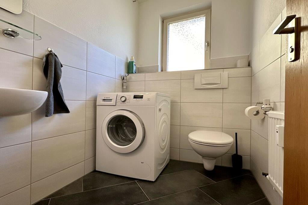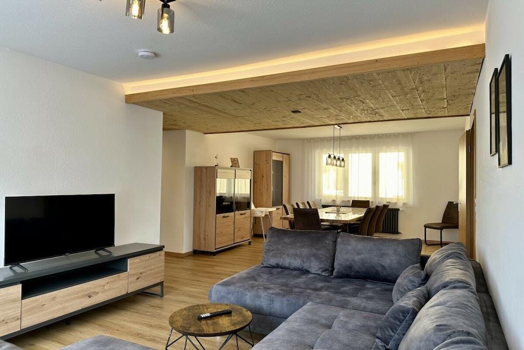 In der linken Seite der Ferienwohnung befindet sich das offene Wohn- und Esszimmer. Das Sofa als auch der Tisch laden zum Zusammensitzen, Essen, Trinken und Wohlfühlen ein. Ein Badezimmer mit Dusche/Wanne als auch ein Gäste-WC bieten Ihnen den notwendigen sanitären Komfort. Diese Ferienwohnung im 2. Stockwerk mieten Sie komplett für sich allein.