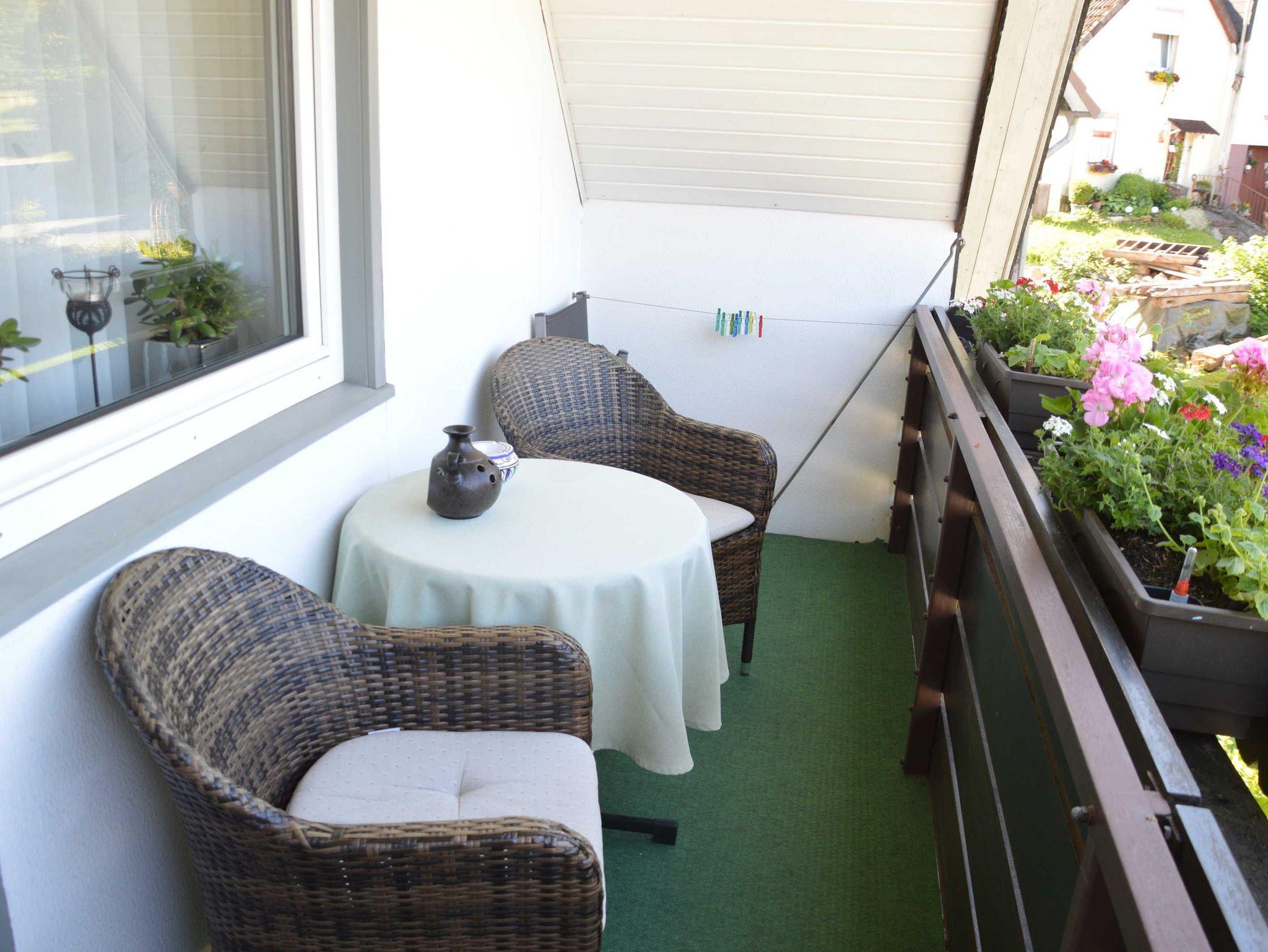 Die gemütlich eingerichtete Ferienwohnung besticht durch ihren Balkon/Loggia mit einzigartigem Ausblick auf die Papiermühle Plöger und in die umliegende Natur. Das Wohnzimmer ist hell und freundlich eingerichtet und bietet zusätzlich noch eine Essecke.