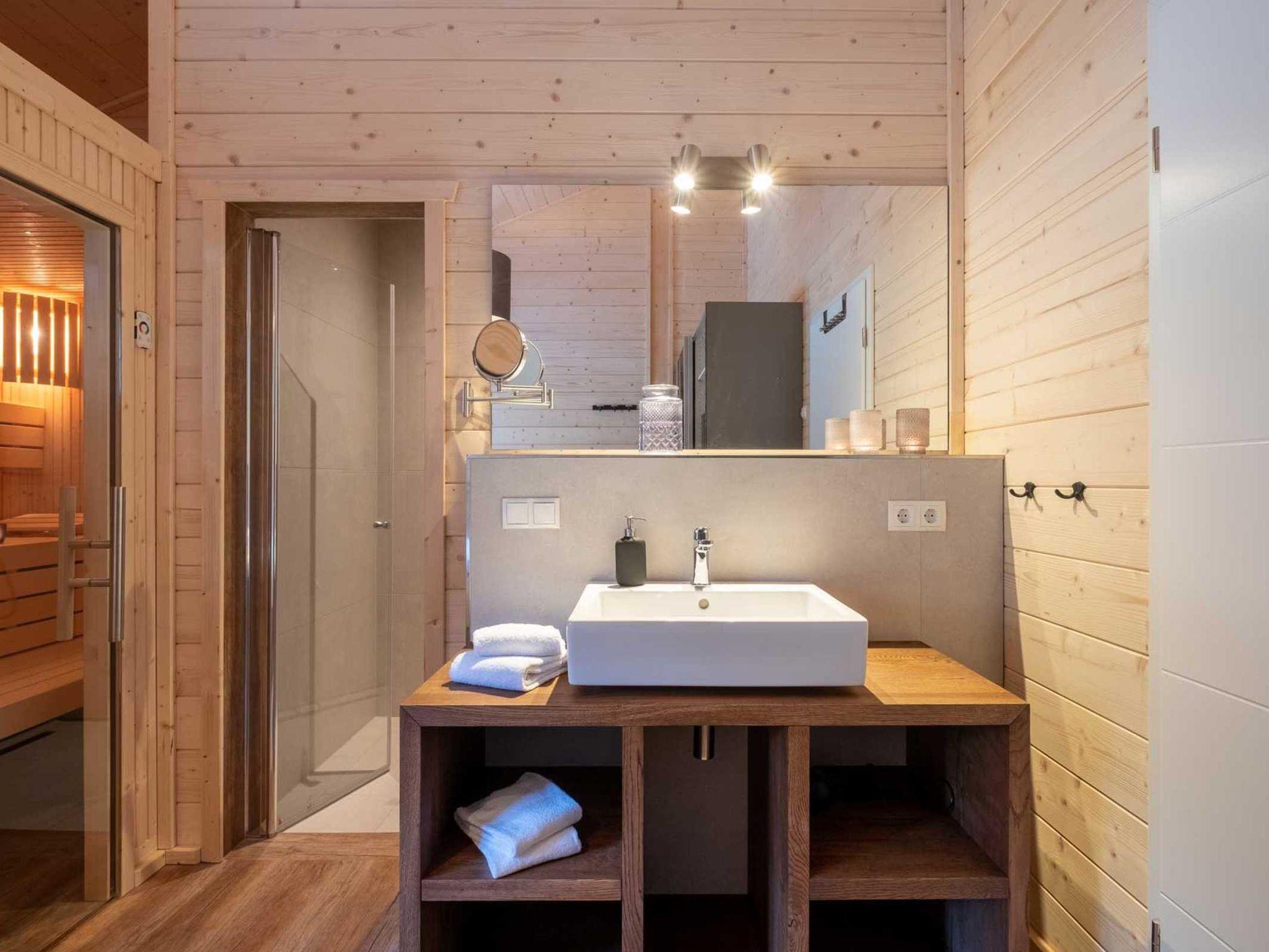 Schlaf-/Duschbereich eine finnische Sauna, die die Hitze über ein Ventil nach