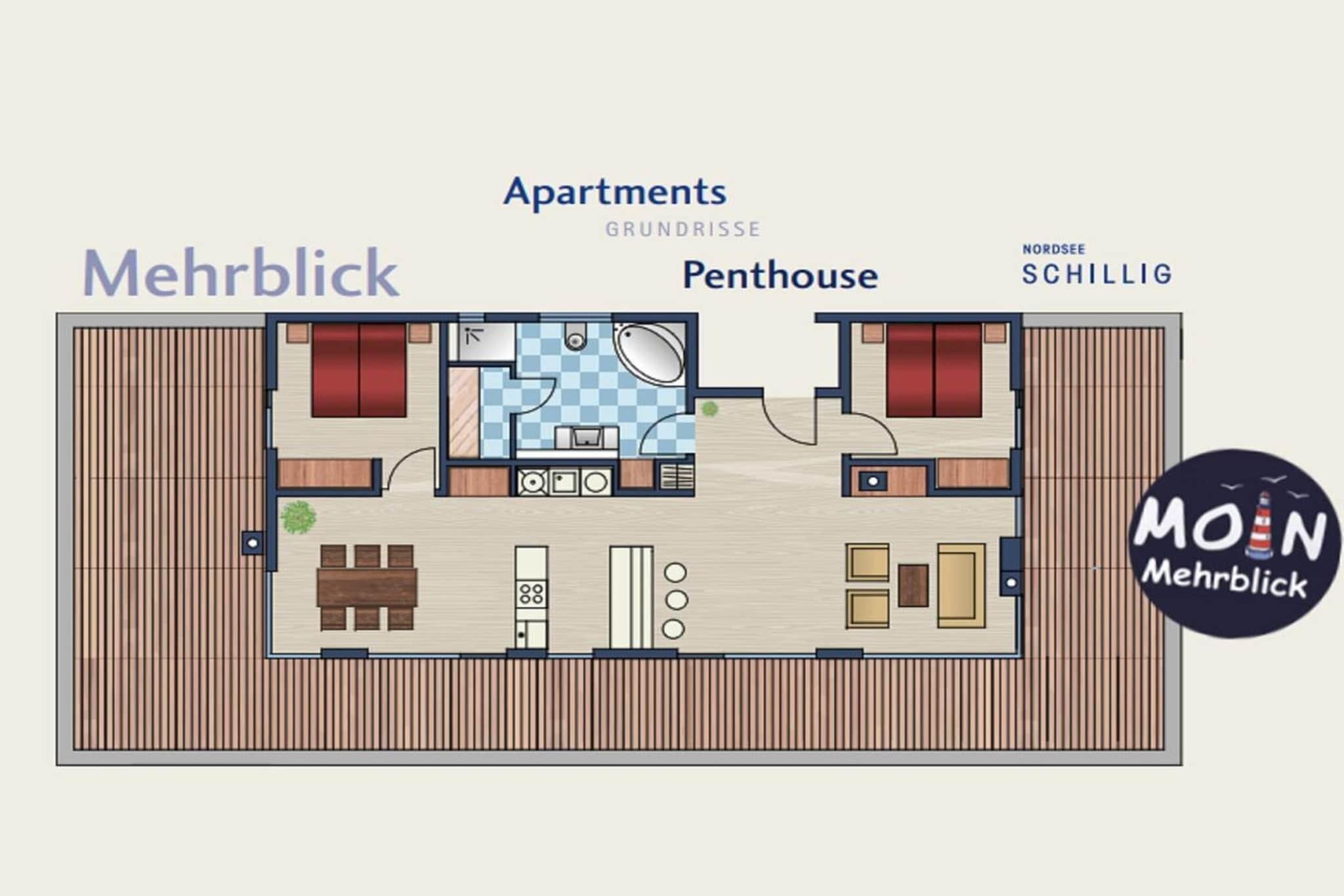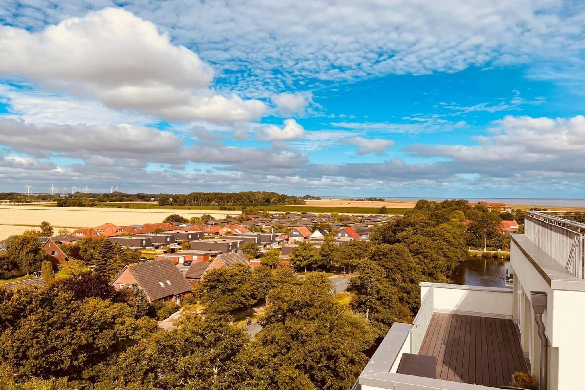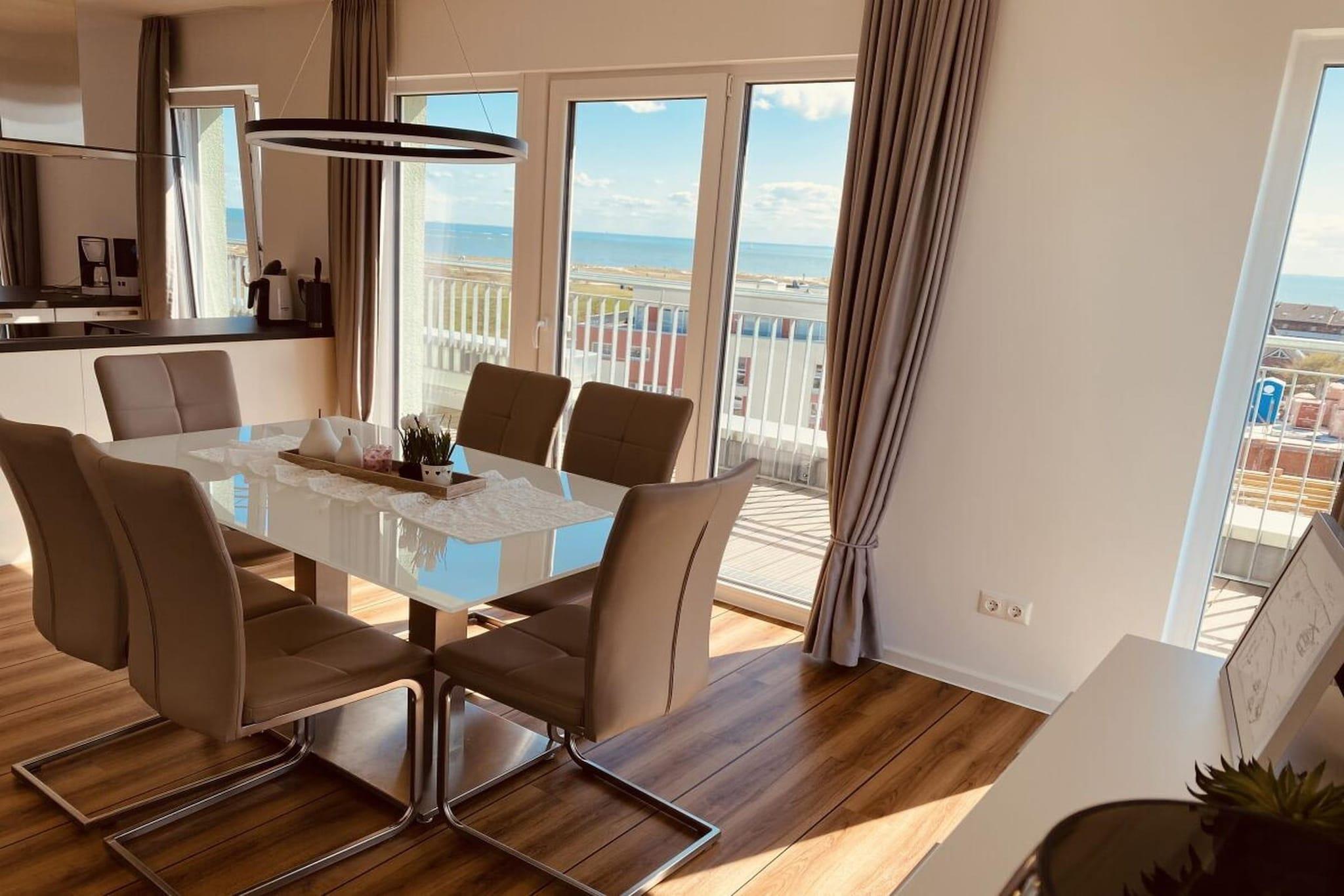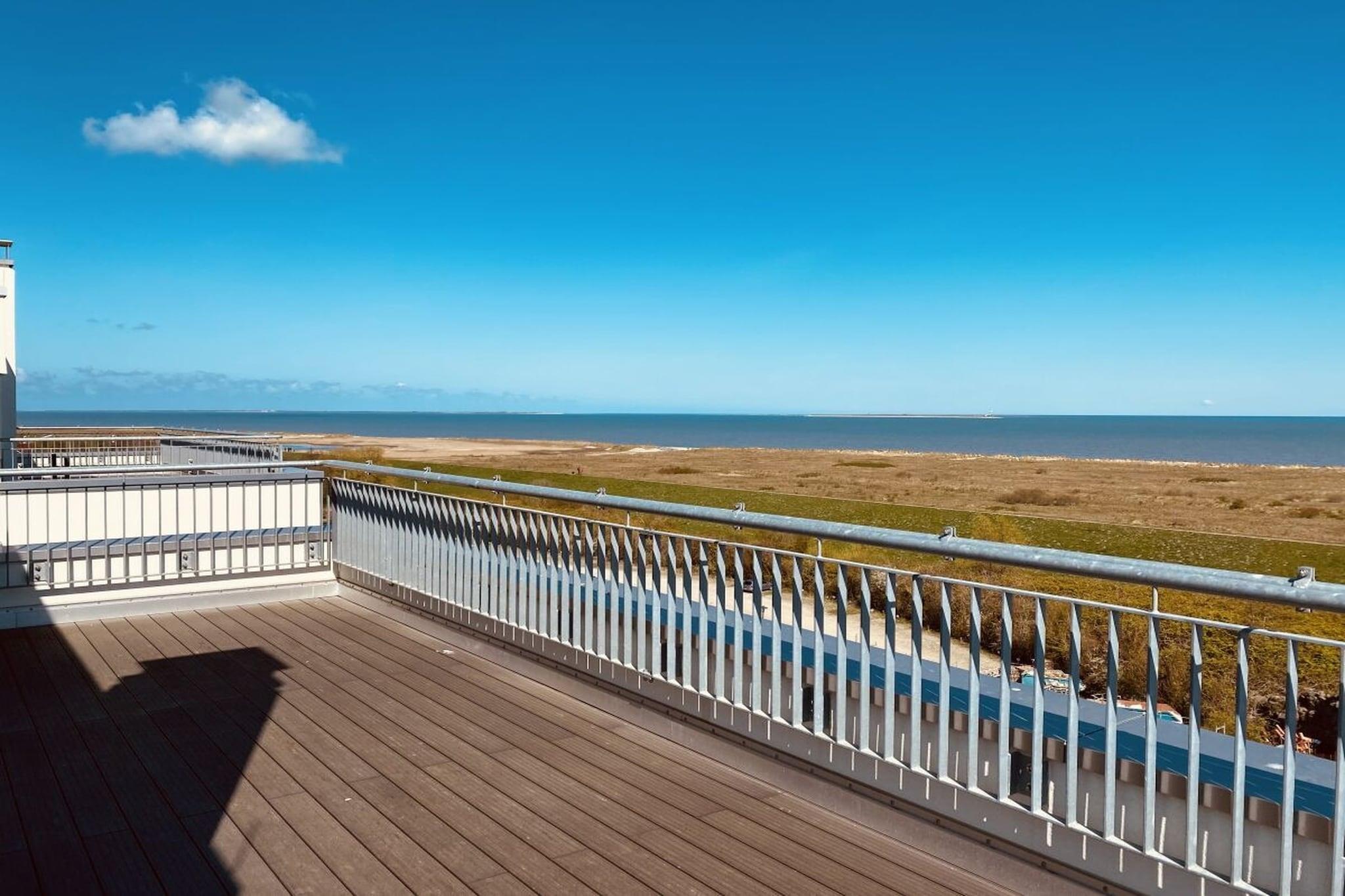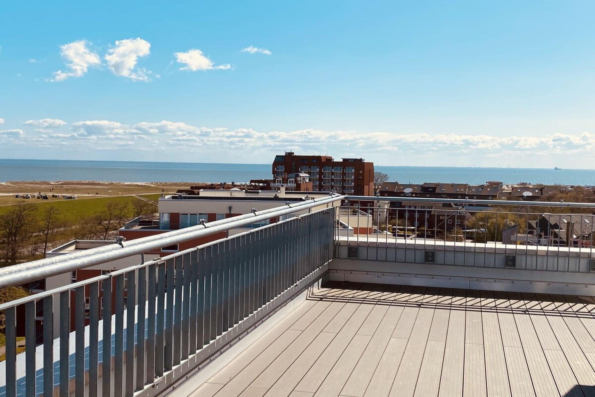 Exklusives Penthouse in Schillig mit umlaufender Dachterrasse und freiem Meerblick für entspannte Ferien.
