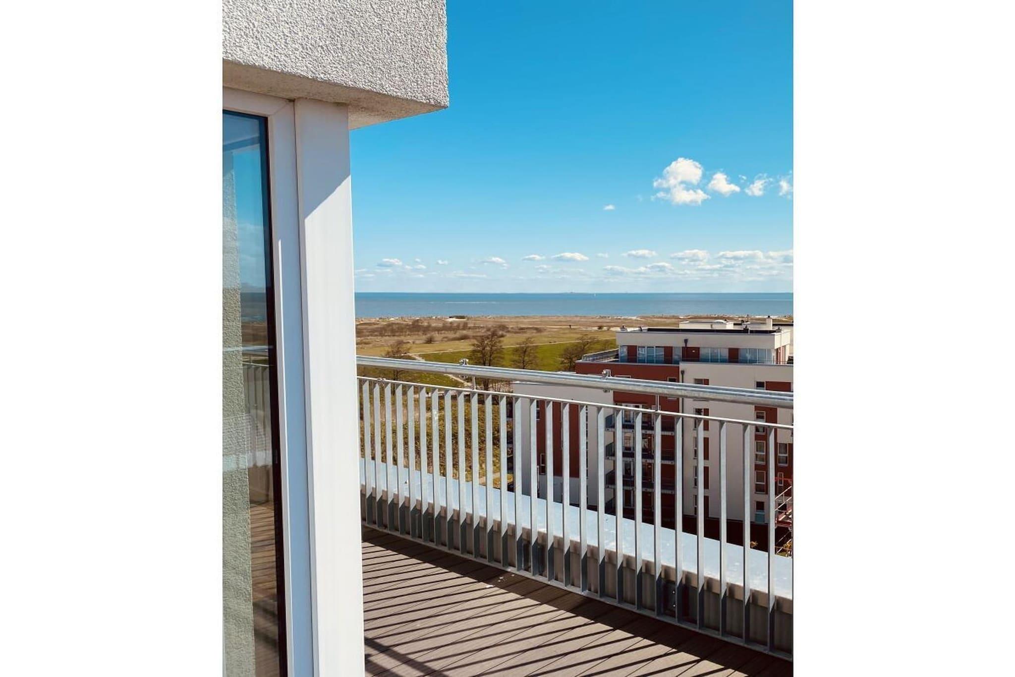 Ganz Oben! Meerblick! Exklusives Penthaus mit umlaufenden Dachterrasse und freiem Meerblick. Die Wohnung besteht aus 2 Schlafbereichen einem Wohnbereich mit Kaminofen, einem hochwertigen Bad mit Dusche, Eckbadewanne, Sauna, eigene Waschmaschine und Fußbodenheizung in der ganzen Wohnung. Offenen Küche mit Backofen, Geschirrspüler, Mikrowelle und Kühl-/Gefrierkombination, Wasserkocher, Filterkaffeemaschine und einer Cafissimo Easy Kaffemaschine. Kostenloser WLAN-Anschluss.
