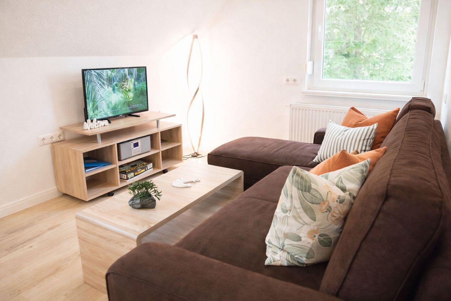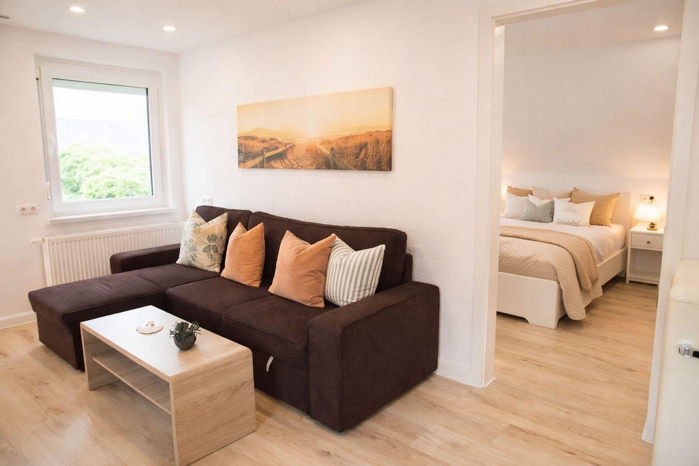Die gemütliche Ferienwohnung Borkum bietet auf etwa 35 Quadratmetern ausreichend Platz für bis zu drei Personen plus Kleinkind oder Baby und ist ideal für Paare oder kleine Familien, die entspannte Tage an der Nordsee verbringen möchten. Das liebevoll sanierte Alte Fischerhaus verbindet seinen historischen Charakter mit zeitgemäßer Ausstattung und schafft so eine warme, einladende Atmosphäre. Der Wohnbereich ist hell und freundlich gestaltet, die bequeme Couch lädt tagsüber zum Lesen, Entspannen oder Träumen ein und lässt sich am Abend mit wenigen Handgriffen in ein gemütliches Bett mit einer Liegefläche von etwa 140 x 200 Zentimetern verwandeln, auf dem man problemlos auch mehrere Nächte komfortabel schlafen kann.
