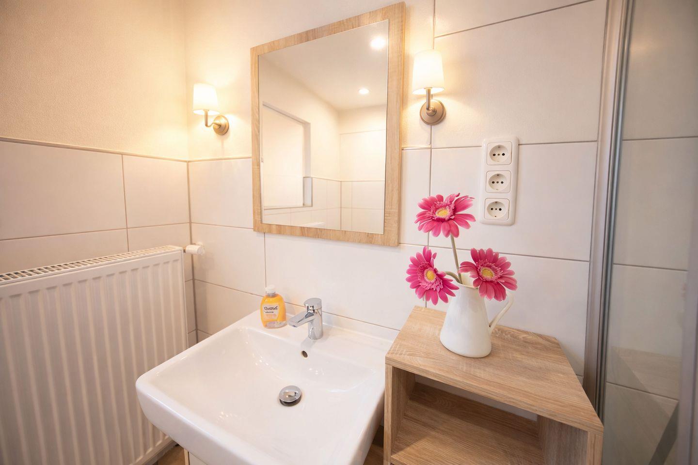 Das Badezimmer ist funktional und modern ausgestattet und verfügt über eine Dusche sowie ein WC. Der Strand ist bequem zu Fuß erreichbar und lädt zu ausgedehnten Spaziergängen, erholsamen Stunden am Meer oder unvergesslichen Sonnenuntergängen ein. Einrichtungen des täglichen Bedarfs, Restaurants und Cafés finden Sie sowohl in Horumersiel als auch direkt in Schillig, sodass Sie alles Wichtige schnell erreichen können. Ein eigener Parkplatz direkt am Haus sorgt für eine stressfreie An- und Abreise. Die Wohnung wird über eine Gas-Zentralheizung beheizt und bietet dank teilweise laminierter und teilweise gefliester Böden ein angenehmes Wohngefühl zu jeder Jahreszeit.