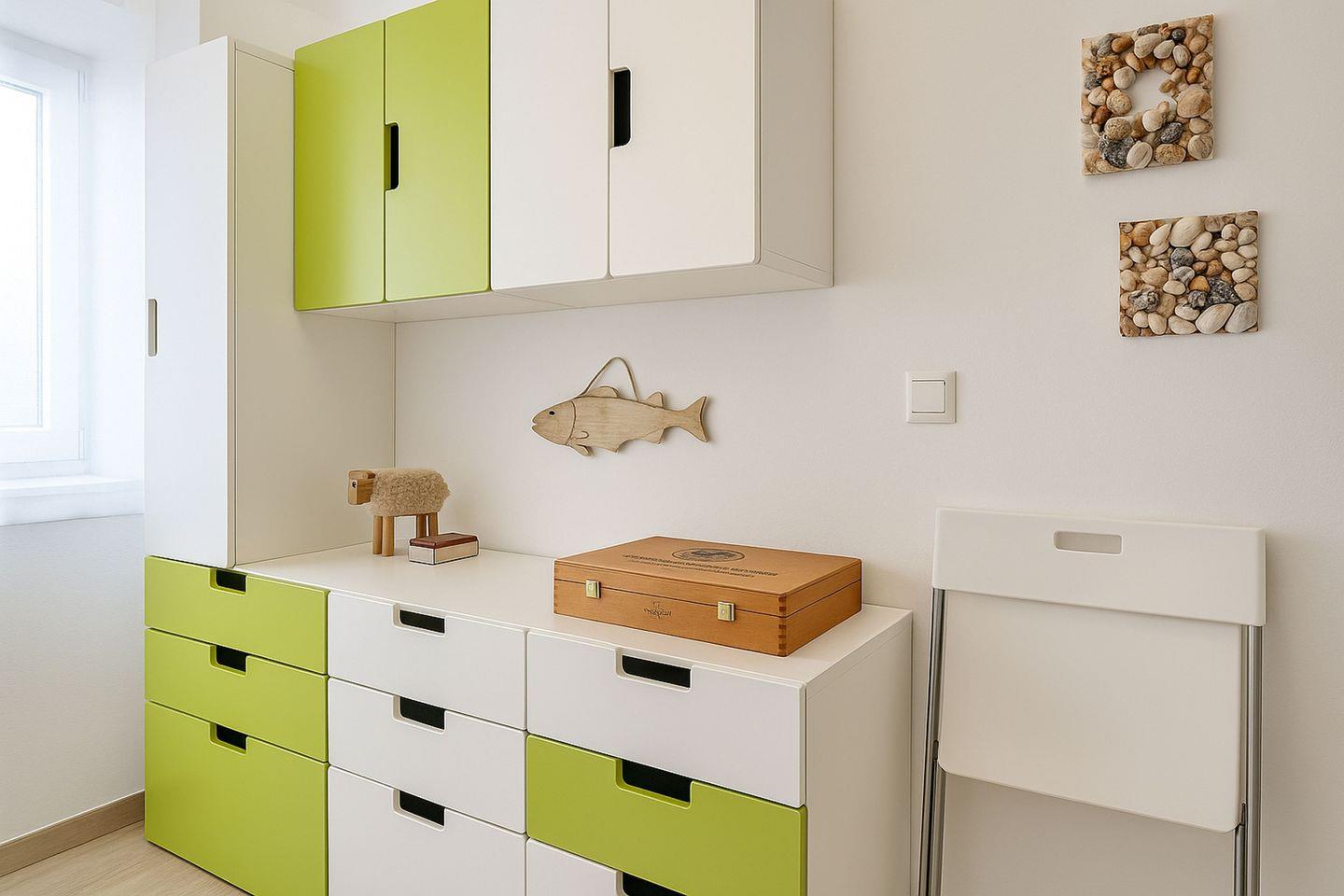 Das Elternschlafzimmer ist mit einem bequemen Doppelbett ausgestattet und bietet einen ruhigen Rückzugsort für erholsame Nächte. Das Kinderschlafzimmer verfügt über ein Etagenbett mit drei Schlafmöglichkeiten und ist ideal für Kinder oder Jugendliche geeignet, wobei die oberste Etage aus Sicherheitsgründen erst für Kinder ab zehn Jahren vorgesehen ist. Für zusätzlichen Komfort stehen Ihnen ein Abstellraum mit Waschmaschine sowie eine große Garage mit Wäschetrockner zur Verfügung. In der Garage finden Sie außerdem Gartenmöbel, Sonnenliegen mit Auflagen und einen Grill, sodass gemütliche Stunden im Freien ganz unkompliziert möglich sind. Fahrräder sind ebenfalls vorhanden, allerdings ohne Gewähr und ausschließlich für Jugendliche und Erwachsene geeignet.