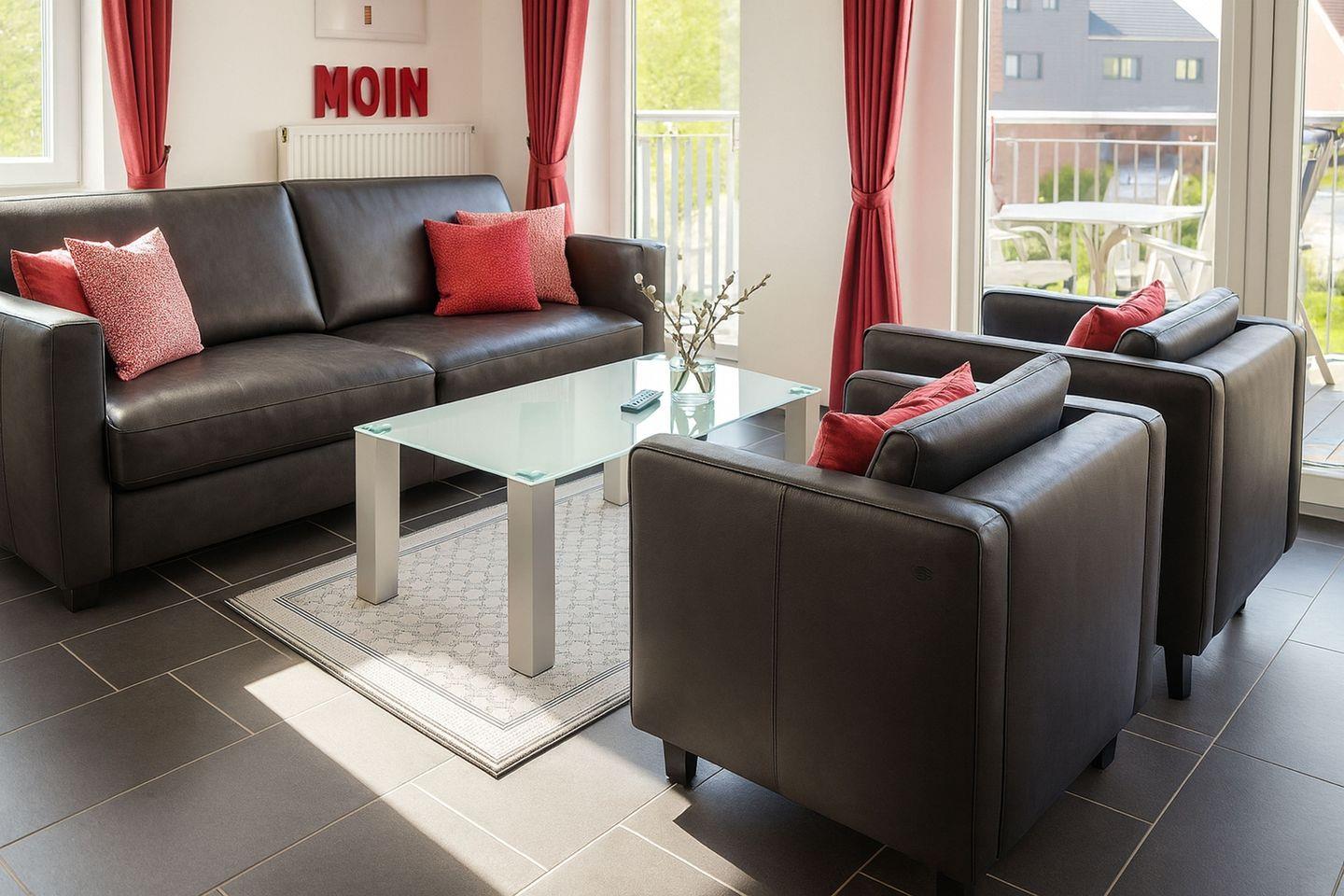 Die Ferienwohnung Waterkant im Nordsee Ferienpark Schillig bietet Ihnen ein exklusives und komfortables Wohnambiente für einen erholsamen Nordseeurlaub. Die moderne, lichtdurchflutete Wohnung befindet sich im ersten Obergeschoss und ist bequem per Aufzug erreichbar. Auf rund 79 m² finden bis zu vier Personen großzügig Platz. Zwei separate Schlafzimmer mit jeweils einem Doppelbett sorgen für erholsame Nächte; für Familien stehen zudem ein Kinderreisebett und ein Hochstuhl bereit. Der offene Wohn- und Essbereich lädt zum Entspannen ein und ist mit drei Fernsehern, einem DVD-Player inklusive Filmen, einer kleinen Bücherauswahl sowie kostenfreiem WLAN ausgestattet. Ein sonniger Süd-Balkon erweitert den Wohnraum nach draußen.