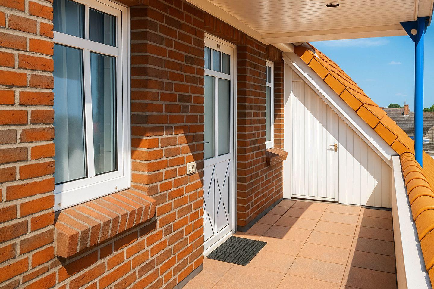 Die Wohnung befindet sich im zweiten Obergeschoss am Ende eines Laubengangs und empfängt Sie im unteren Bereich mit einem großzügigen, hellen Wohnraum. Ein gemütliches Sofa lädt zum Zurücklehnen und Entspannen ein, während zwei praktische Schrankbetten flexible Schlafmöglichkeiten bieten und tagsüber für ein angenehmes Raumgefühl sorgen. Die gut ausgestattete Küche ist harmonisch integriert und ermöglicht eine komfortable Selbstversorgung. Der angrenzende Essbereich schafft einen einladenden Platz für gemeinsame Mahlzeiten, Gespräche oder Spieleabende. Vom Wohnbereich aus gelangen Sie direkt auf den Balkon, der den idealen Ort bietet, um die frische Meeresluft zu genießen und den Tag in angenehmer Atmosphäre ausklingen zu lassen.