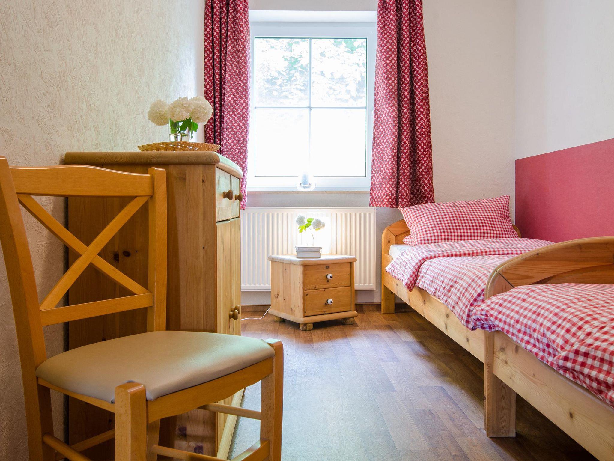 bietet 2 Schlafzimmer, 1 Wohnzimmer, 1 voll ausgestattete Küche, 2 WC, 1 Dusche und Terrasse. Benutzung von Waschmaschine und Trockner im Nebengebäude ist möglich.Das Grundstück mit Spielplatz bietet viel Platz zum Toben und Spielen und Abwechslung für die Kinder.