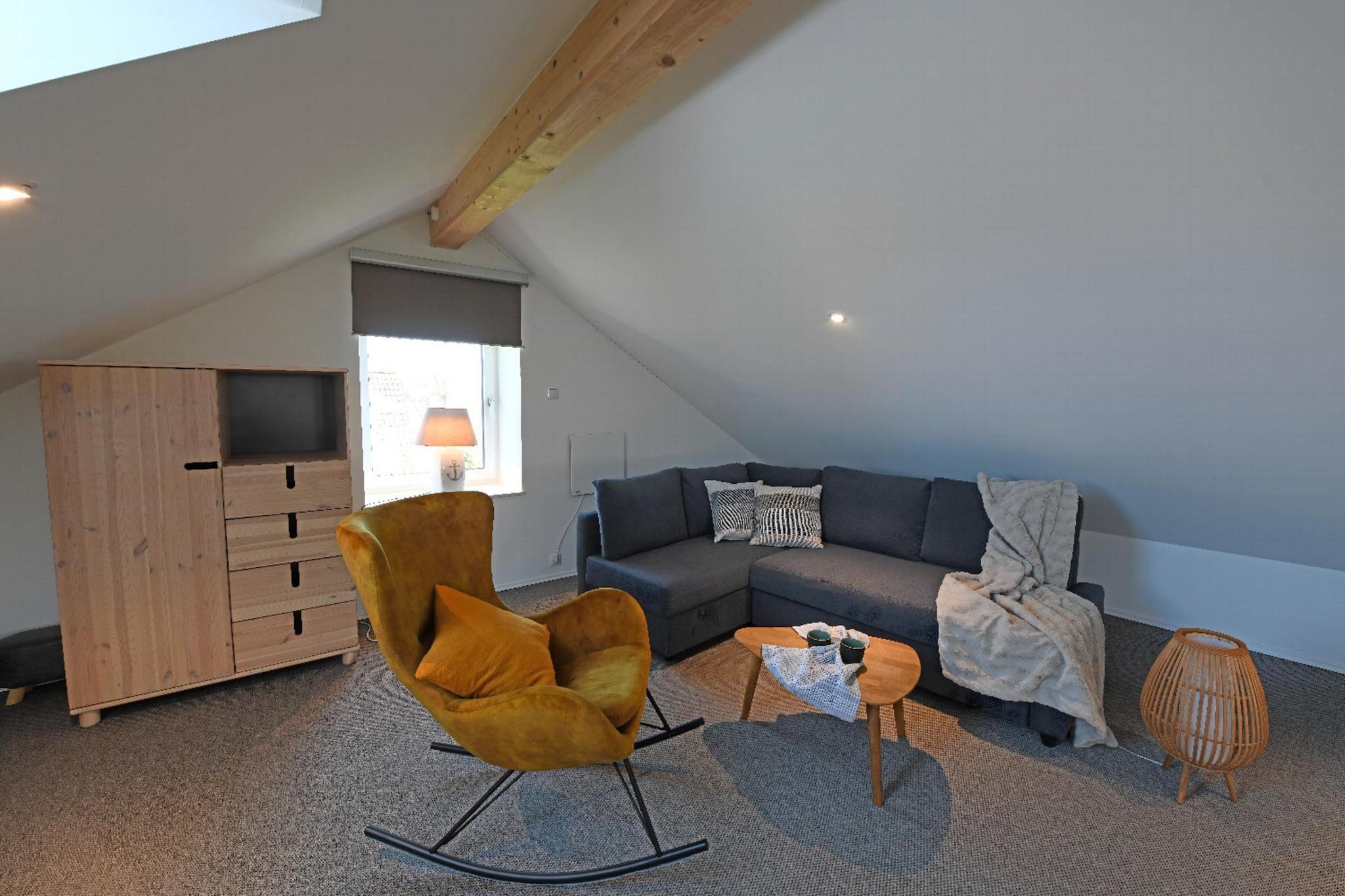 Parterre: (offene Küche(Kochplatte(4 Kochplatten, Ceranfeld), Wasserkocher, Toaster, Kaffeemaschine, Backofen, Spülmaschine, Kühlschrank(+ Gefrierfach)), Wohn/Esszimmer(TV(smart TV), Esstisch(6 Personen), Radio), Schlafzimmer(Doppelbett(180 x 200 cm)), Schlafzimmer(Doppelbett(140 x 200 cm)), Badezimmer(Waschbecken, Toilette), Badezimmer(Dusche, Waschbecken, Toilette), Flur, Infrarotsauna) Dachgeschoss: (Galerieschlafzimmer(Doppelschlafcouch)) Grill, Waschmaschine, Heizung, Terrasse(überdacht), Garten, Gartenmöbel, Parkplatz, Hochstuhl, Bügeleisen, Babybett (kostenlos), Handtücher/Bettwäsche (extra Gebühr)