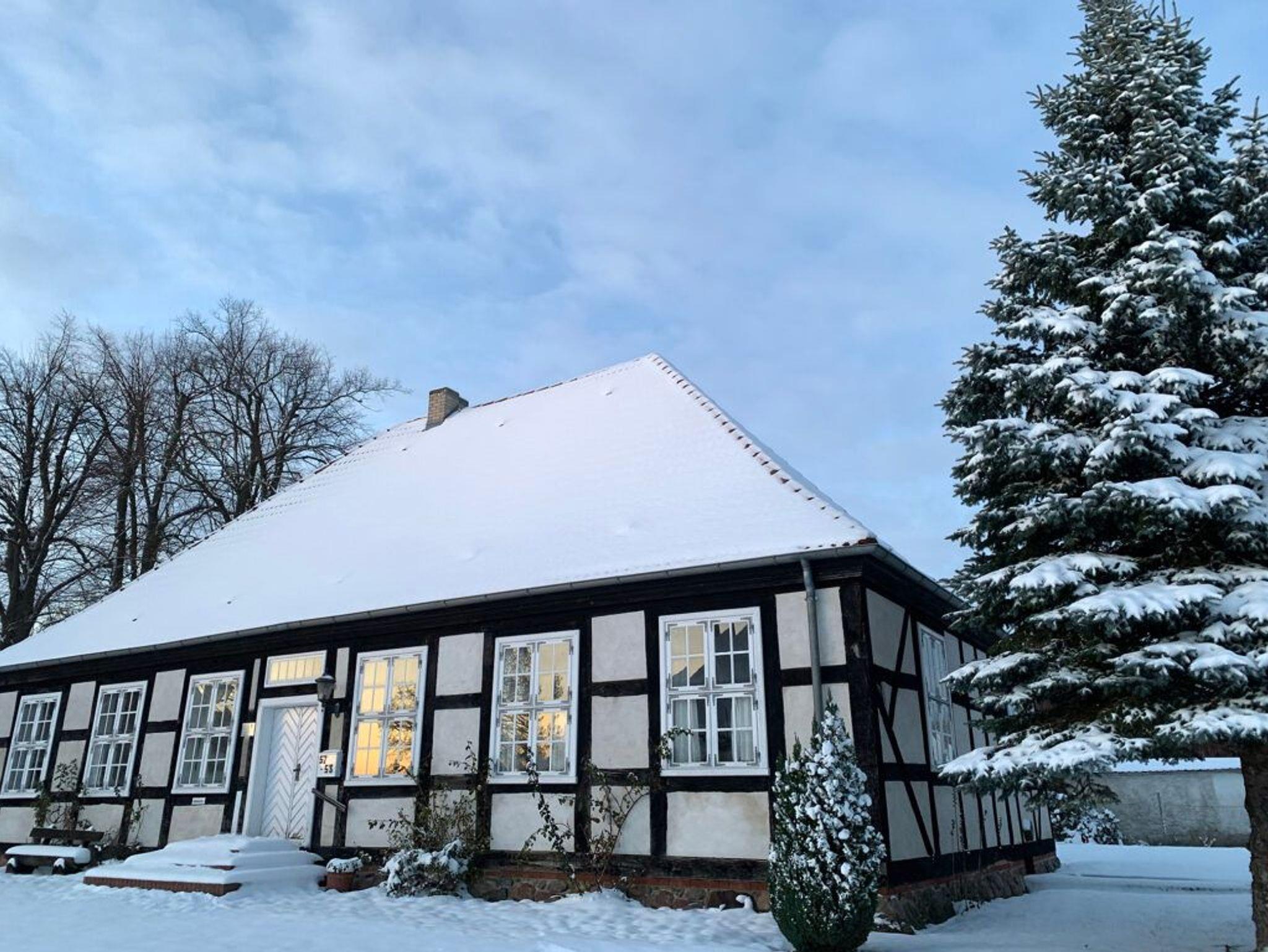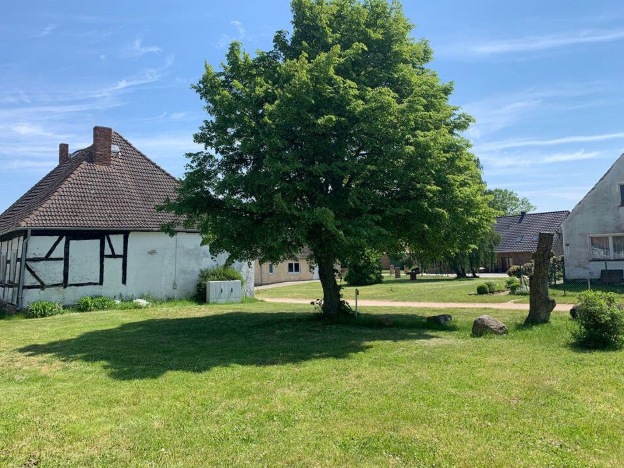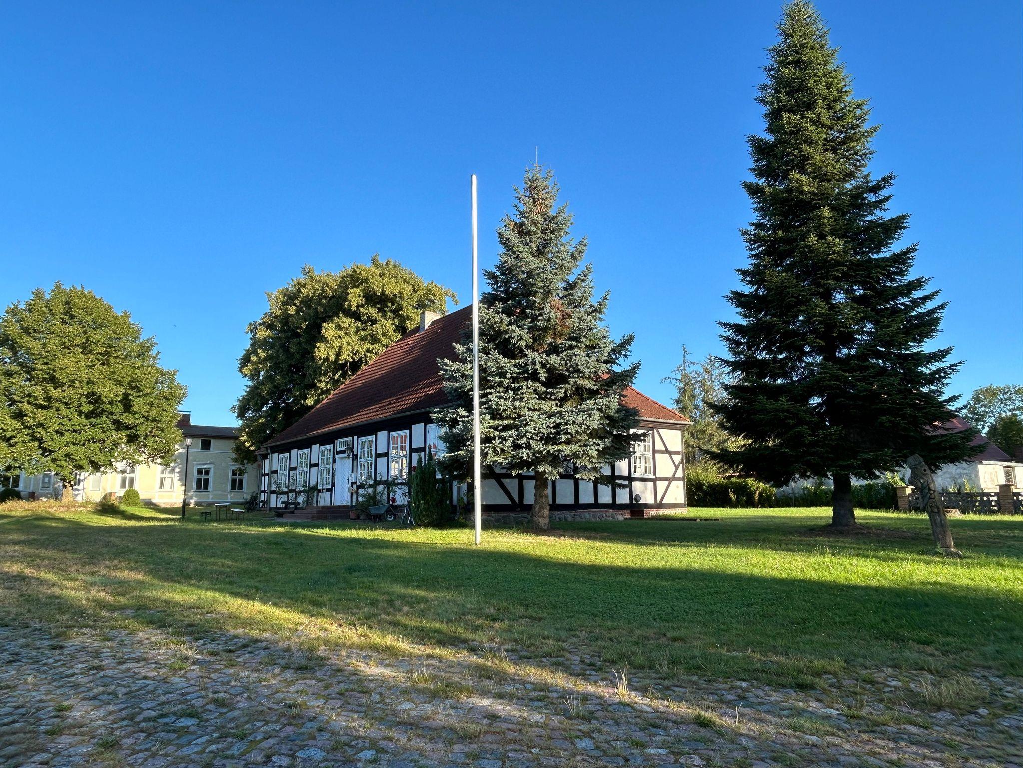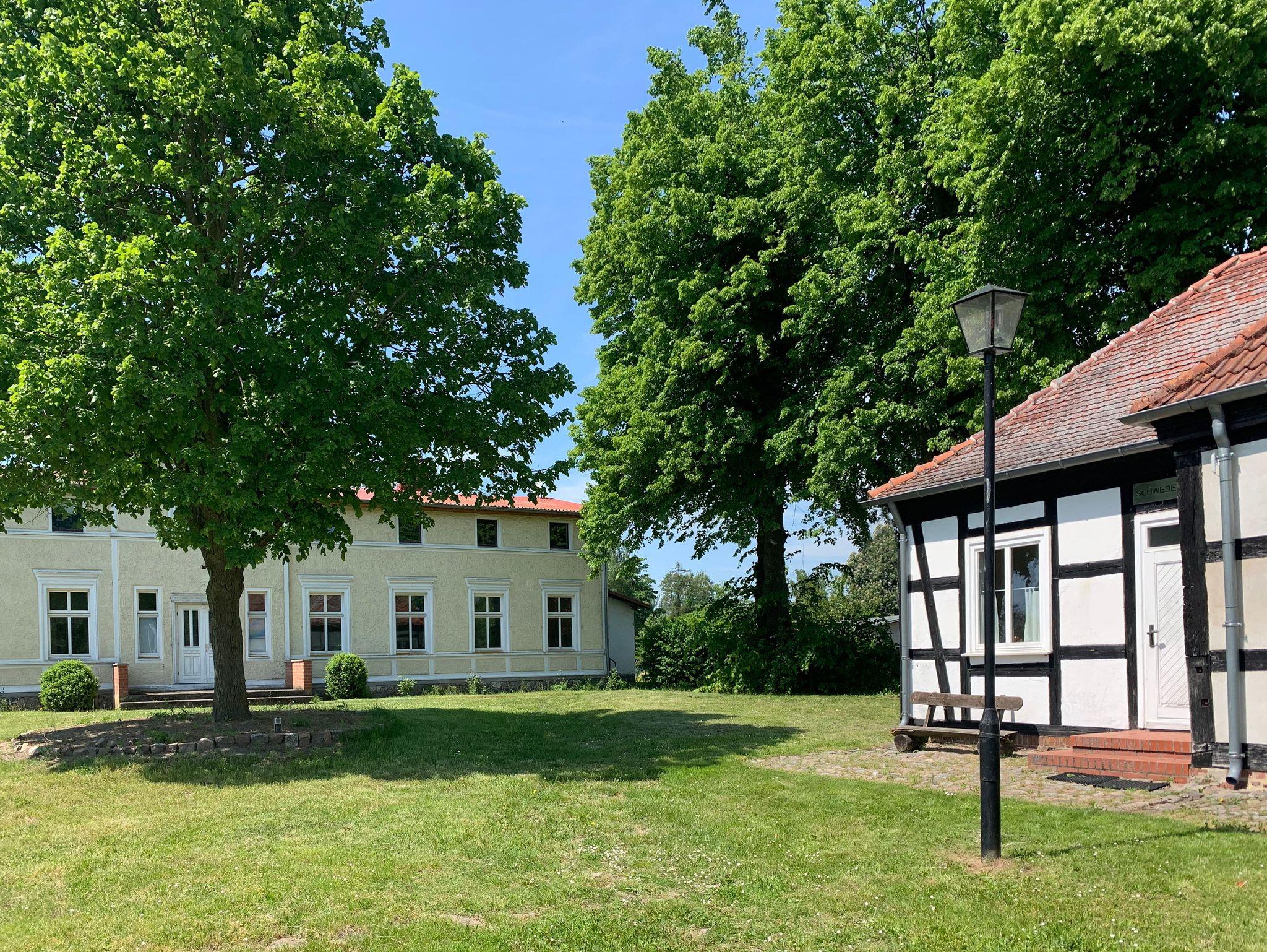 Das Gutshaus und die zwei Fachwerkhäuser liegen auf einem fußballfeldgroßen Grundstück im Ortszentrum von Schlatkow. Eines der Fachwerkhäuser wurde 2023 denkmalgerecht saniert - hier stehen drei schöne Ferienwohnungen zur Verfügung. Zusätzlich gibt es einen Gemeinschaftsraum, der sich gut zum gemeinsamen Essen, Spielen oder Arbeiten eignet; dafür steht seit Kurzem auch ein Glasfaseranschluss zur Verfügung.