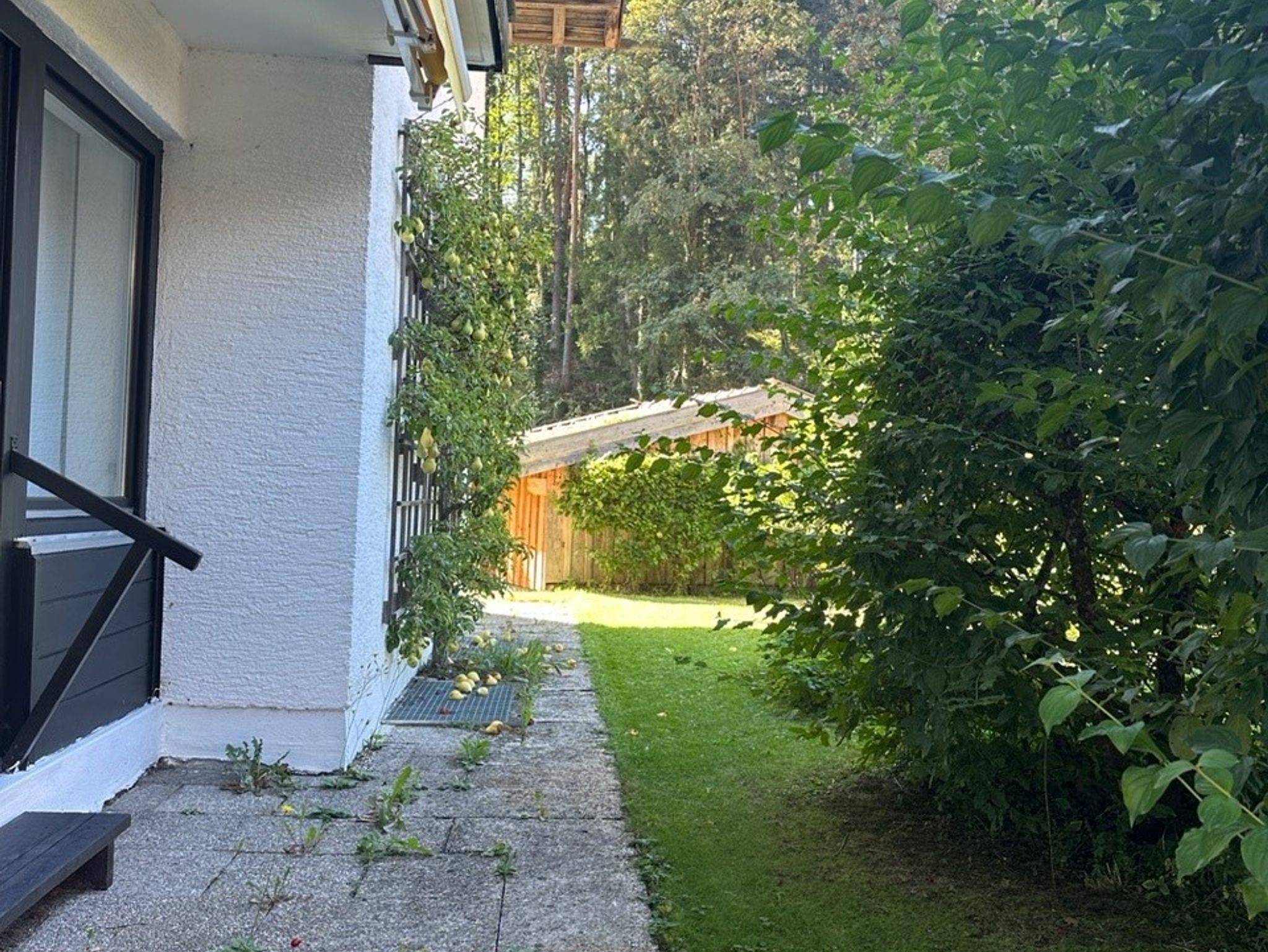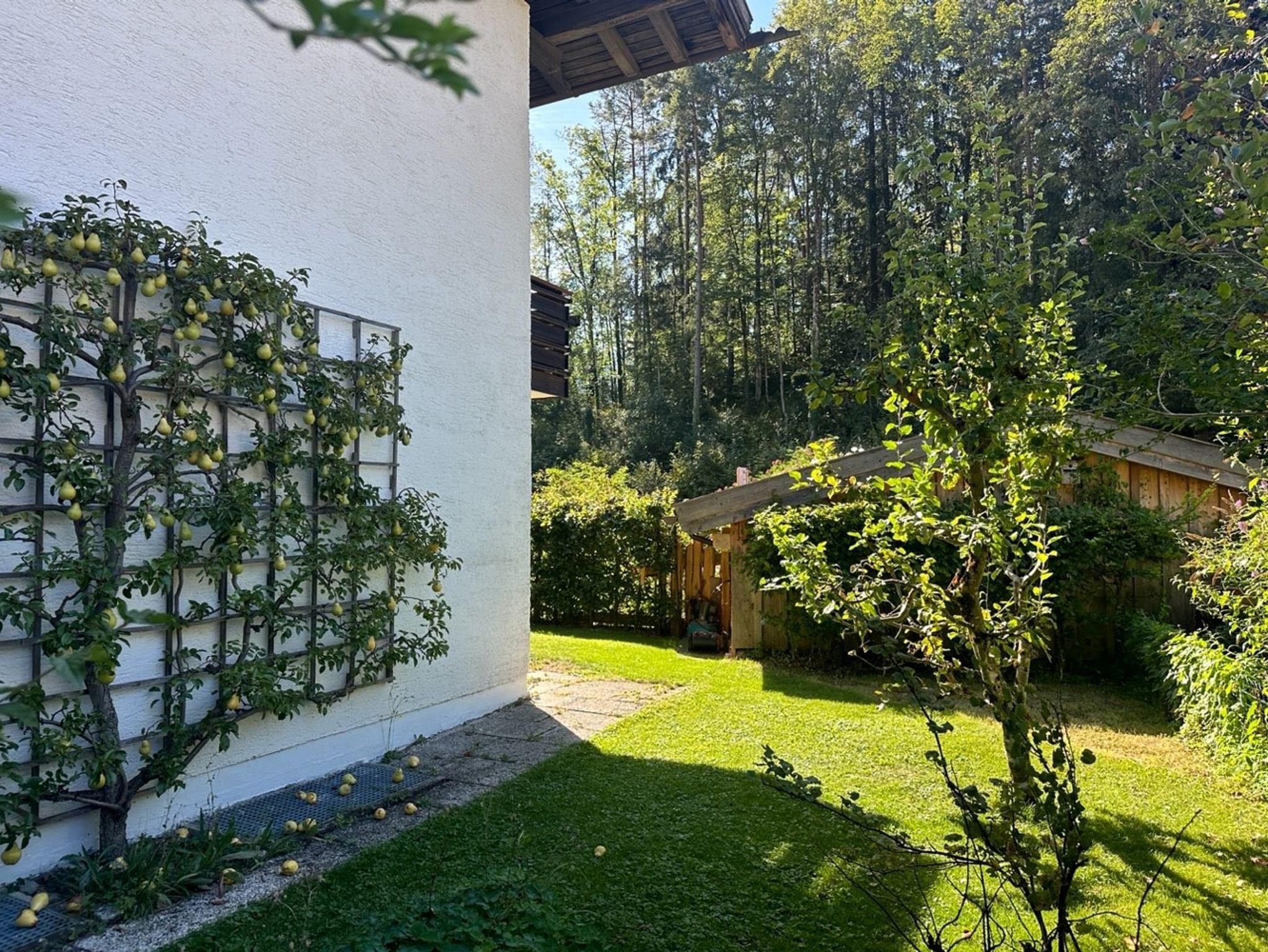 Die Terrasse ist der ideale Ort, um die frische bayerische Luft zu genießen, sei es bei einer Tasse Kaffee am Morgen oder einem Glas Wein am Abend. Hier können Sie die Ruhe und den Blick auf die umliegende Natur in vollen Zügen auskosten.