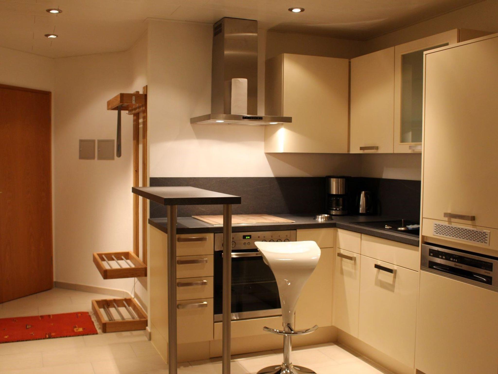 Das Appartement bietet 2 Schlafzimmer mit jeweils separatem Badezimmer. Ideal für Familien oder 3-4 Erwachsene. Hunde (max. zwei) sind gerne willkommen. 1 Schlafzimmer ist mit Doppelbett (1,60 x 2 m) und großem Wandschrank ausgestattet. Das anhängende Badezimmer hat Toilette, Waschbecken und eine große Badewanne. Das zweite Zimmer bietet 2 Einzelbetten (0,90 x 2 m), einen Schrank und angehängtem Badezimmer mit Toilette, Waschbecken und Dusche. Der Eingangsbereich führt in die offene Küche, mit Elektroherd, Cerankochfeld, Kühlschrank und Spülmaschine. Die Küche ist offen hin zum großzügigen Wohn-/Essbereich, in dem sich ein großer Kamin, Sofasitzecke, Fernseher und Tisch befinden. Die Wohnung liegt im ersten Stock eines Mehr-Appartement Hauses und bietet zusätzlich einen umlaufenden Balkon mit Sonne satt von Ost bis West und weiteren Sitzmöglichkeiten. Fernseher mit DVD Player und WLAN sind vorhanden. Im Haus selbst befindet sich ein Skiraum mit Tischtennisplatte, eine Gemeinschaftssauna (2,- € pro Stunde) und eine Waschküche mit Waschmaschine und Trockner (1- und 2 Euro Münzen) im Nebengebäude. Zur Wohnung gehören ein Außenstellplatz und ein Tiefgaragenstellplatz. Eine Wallbox soll in nächster Zukunft installiert werden.