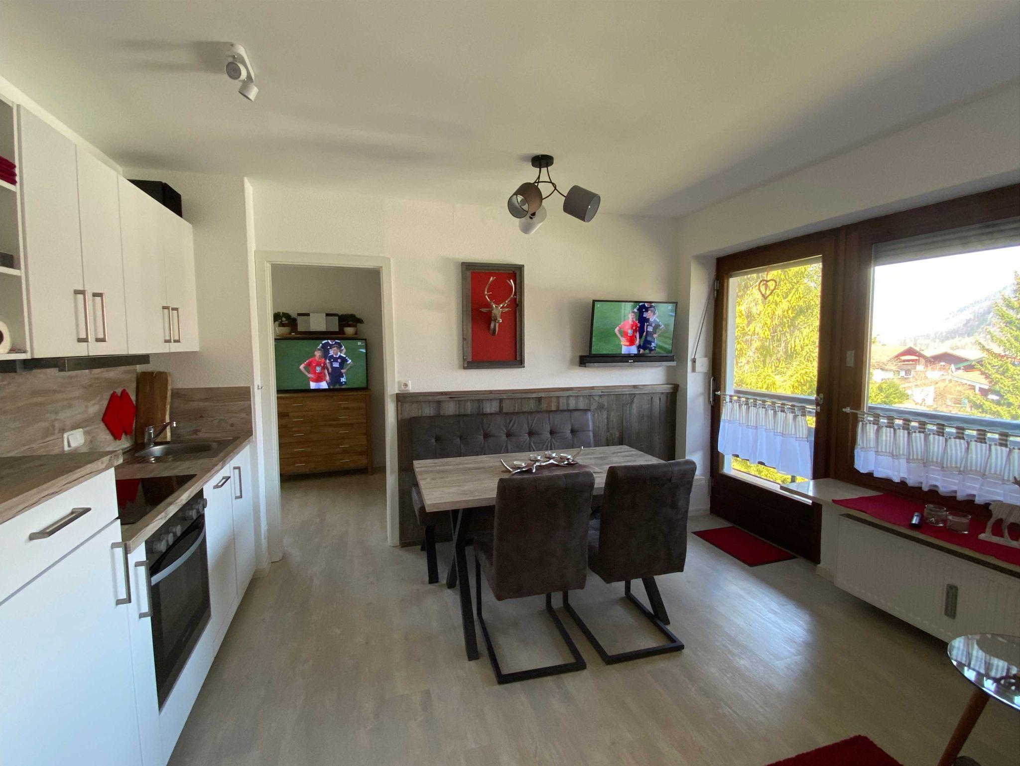 Neuwertige Ferienwohnung mit Traumaussicht ins Achental. Die Wohnung verfügt über ein separates Schlaf/Kinderzimmer mit TV/DVD/Hi-Fi sowie WLAN in allen Räumen. Das Wohnzimmer mit integrierter hochwertiger Einbauküche und Sitzbank-Essgruppe verfügt über ein exzellentes Schlafsofa mit Lattenrost und auch TV/DVD/Hi-Fi. Ein modernes Bad mit Ganzglasdusche und Handtuchtrockner lässt keine Wünsche offen. Vom geräumigen Balkon mit Ecksitzbank genießen Sie eine atemberaubende Sicht auf die Bergwelt sowie die Skipiste von Hoch-Kössen.