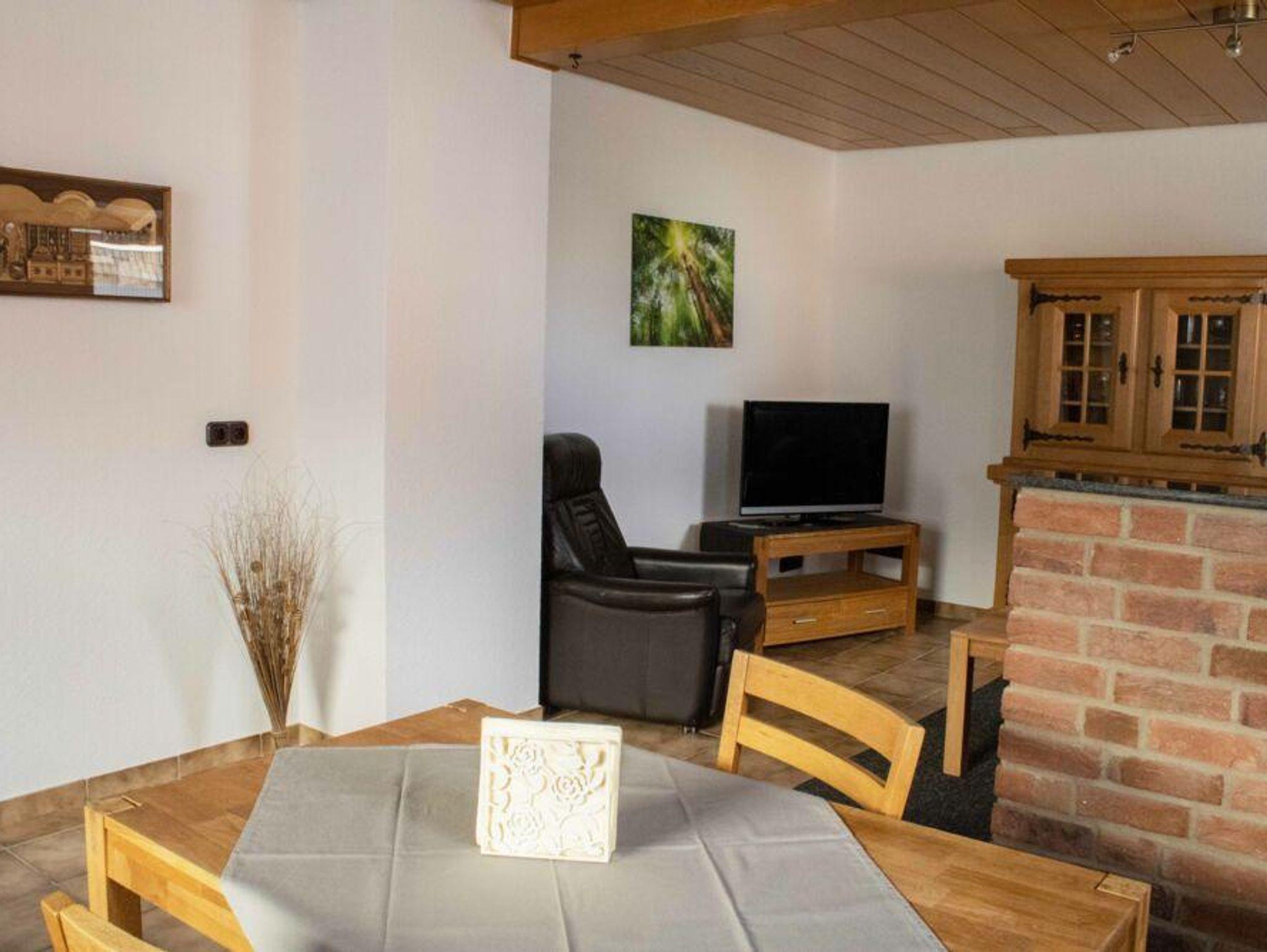 Wohnbereich mit Flachbild-TV, Fernsehsessel und bequeme Couchgarnitur.