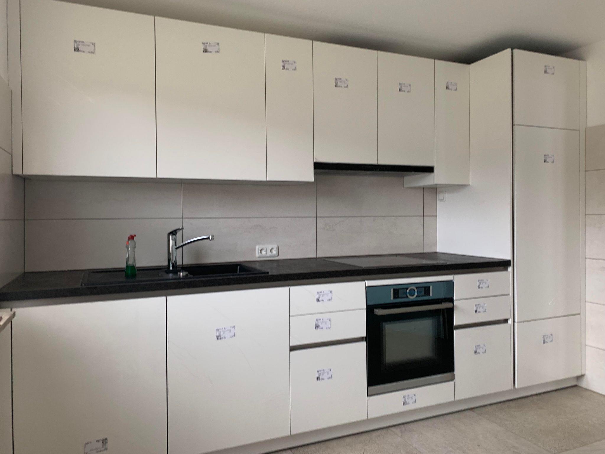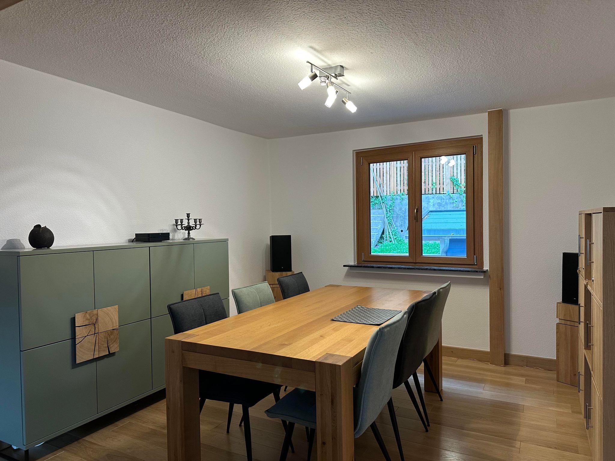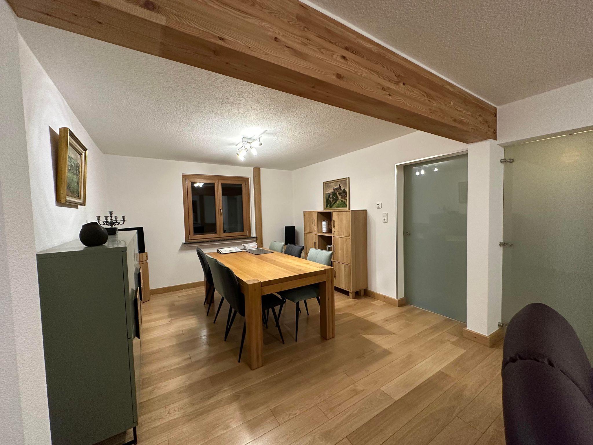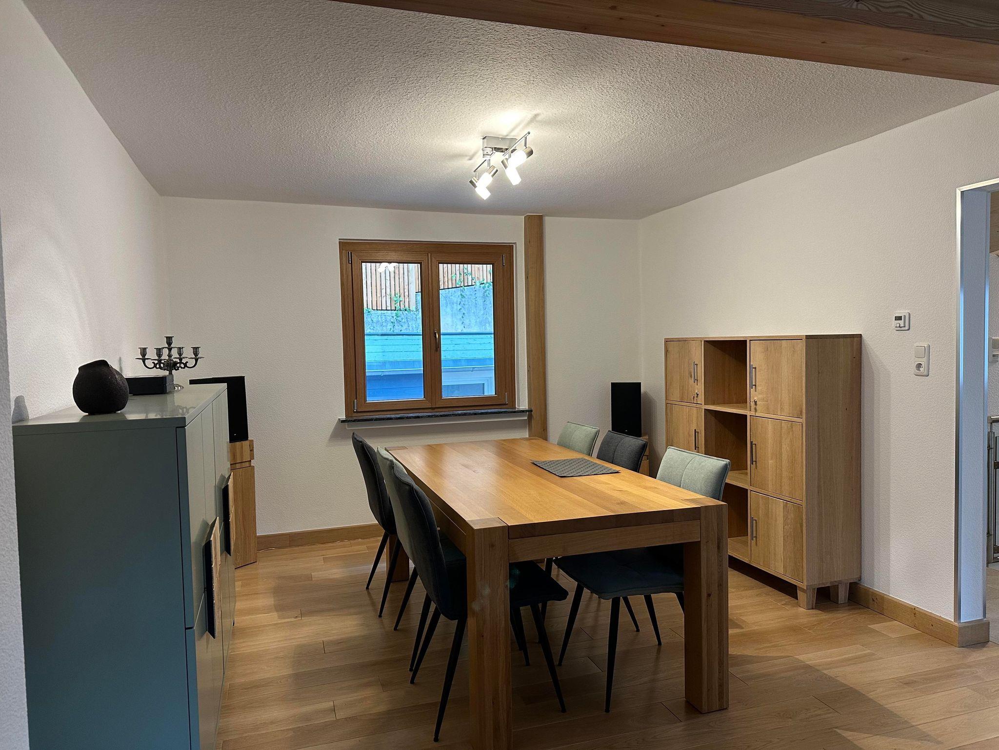 1 große Küche, komplett eingerichtet mit Geschirrspülmaschine, Ceran-Kochfeld, Backofen, Mikrowelle, Kühlgefrierschrank, Esstisch und Sitzbank für bis zu 6 Personen,