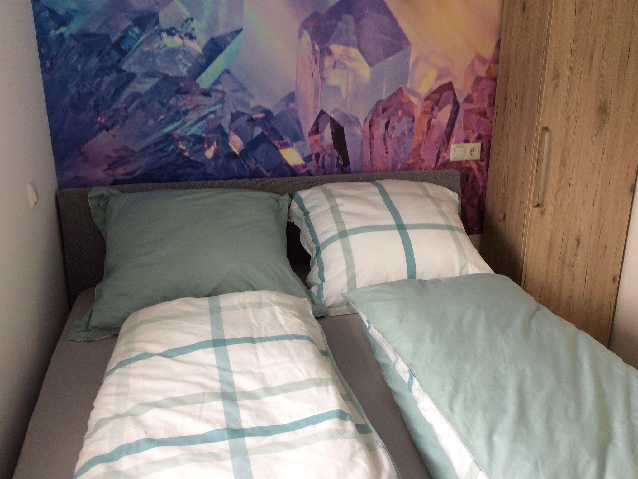 Unser kleines 1-Zimmer-Appartement „Aquamarin“ ist insgesamt 22 qm groß und ideal für 2 Personen geeignet. Es hat alles, was man für einen angenehmen Aufenthalt braucht: Dusche/WC, Boxspringbett, Schlafcouch, Küchenzeile mit Herd, Backofen und Spülmaschine, Kaffeemaschine für Pads, Wasserkocher, Toaster, kostenloses WLAN, Smart-TV.