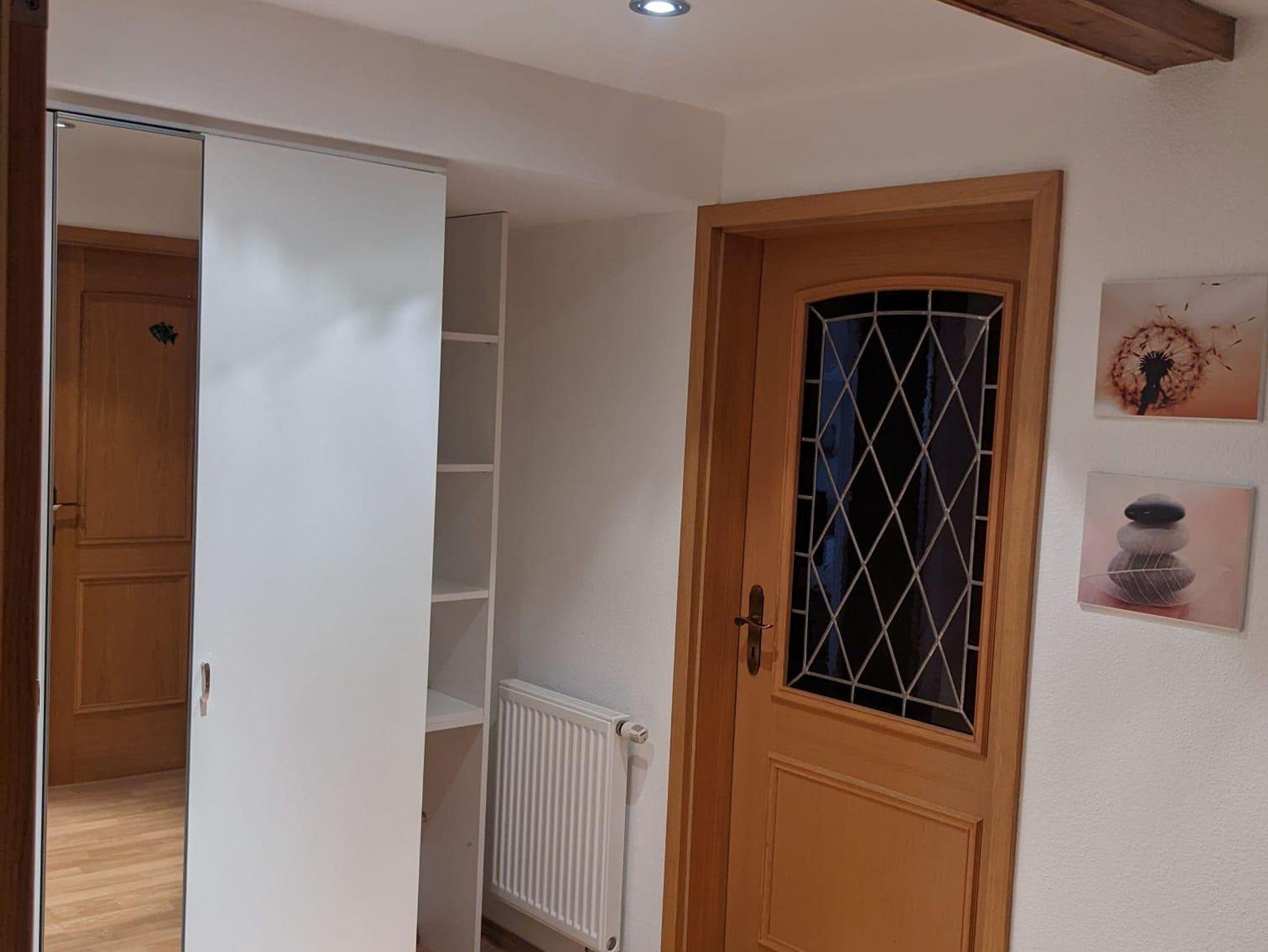 Flur: Einbaumöbel mit Schuhablage, Regal und Spiegel