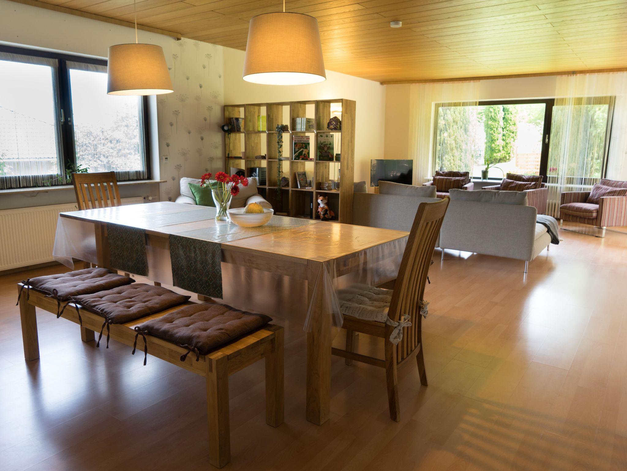 Die Ferienwohnung Wilder Hunsrück, mit einer Terrasse und Gartenblick, verfügt über vier Schlafzimmer (2 X Doppelzimmer, 2 x Zweibett-Zimmer), ein großes Wohn-Esszimmer mit Flachbild-TV, zwei Badezimmer (1 x Dusche /WC, 1 x Badewanne/Dusche/WC) sowie über eine gut ausgestattete Küche mit Kühlschrank, Gefrierschrank, Geschirrspüler, Mikrowelle usw.