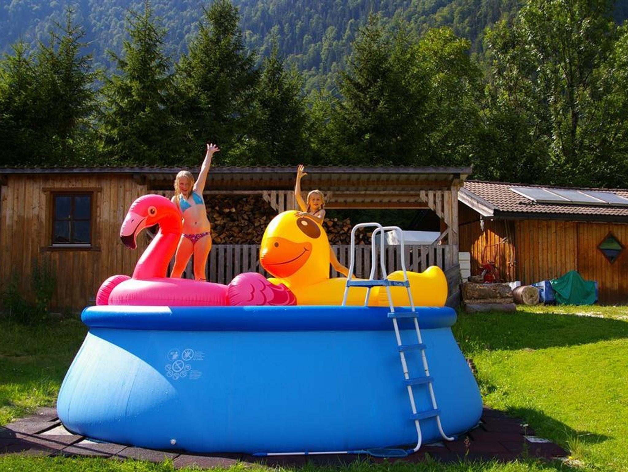 Großzügig eingerahmt vom Bergwald und großen Wiesen und Garten um unser Haus, laden Sie Kinderspielplatz mit großem Trampolin, Spielturm mit Sandkasten, Schaukeln, Kinderfußballplatz, großen Kinderpool und Grillplatz ein.