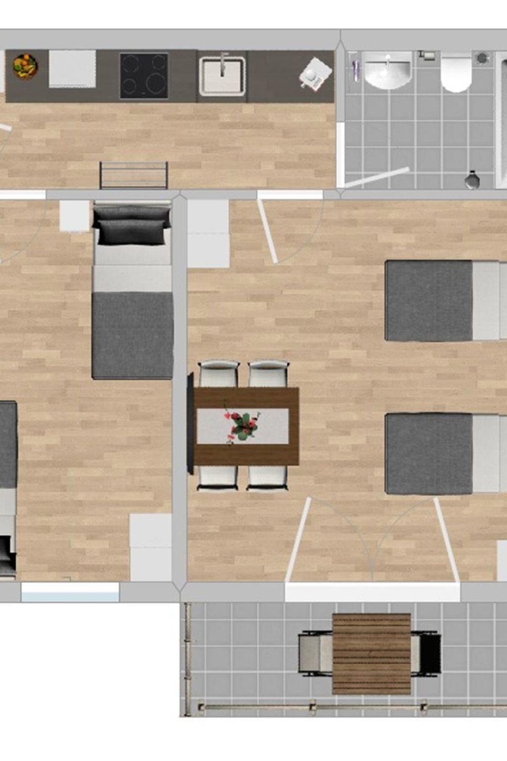 Auf dem Grundriss der Unterkunft können Sie die genaue Zimmer- und Bettenaufteilung sehen.