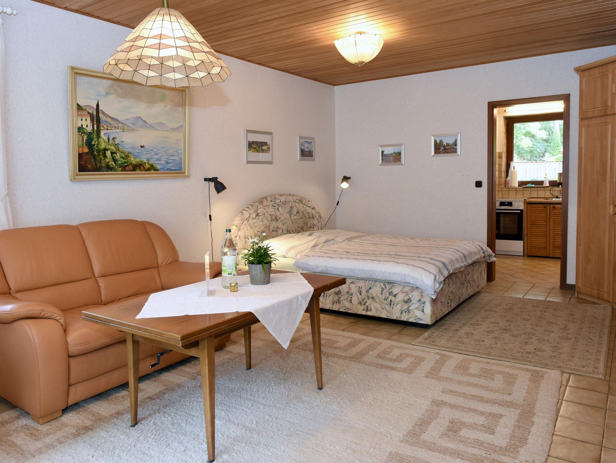 Die 40 m² große Ferienwohnung befindet sich im Erdgeschoss und verfügt über einen Wohn - und Schlafraum, eine Küche sowie ein Bad mit Dusche und WC. Gartenbenutzung möglich.