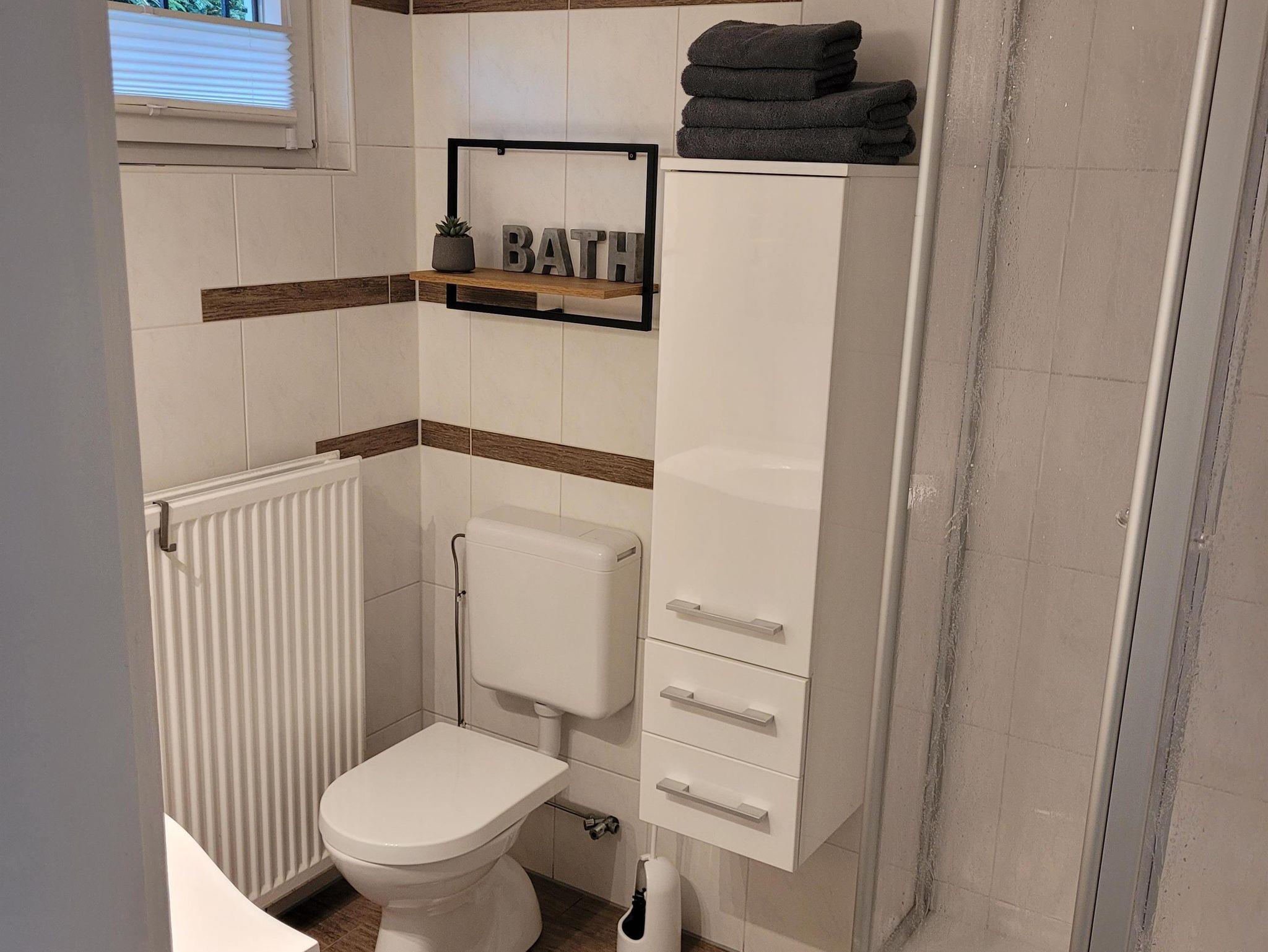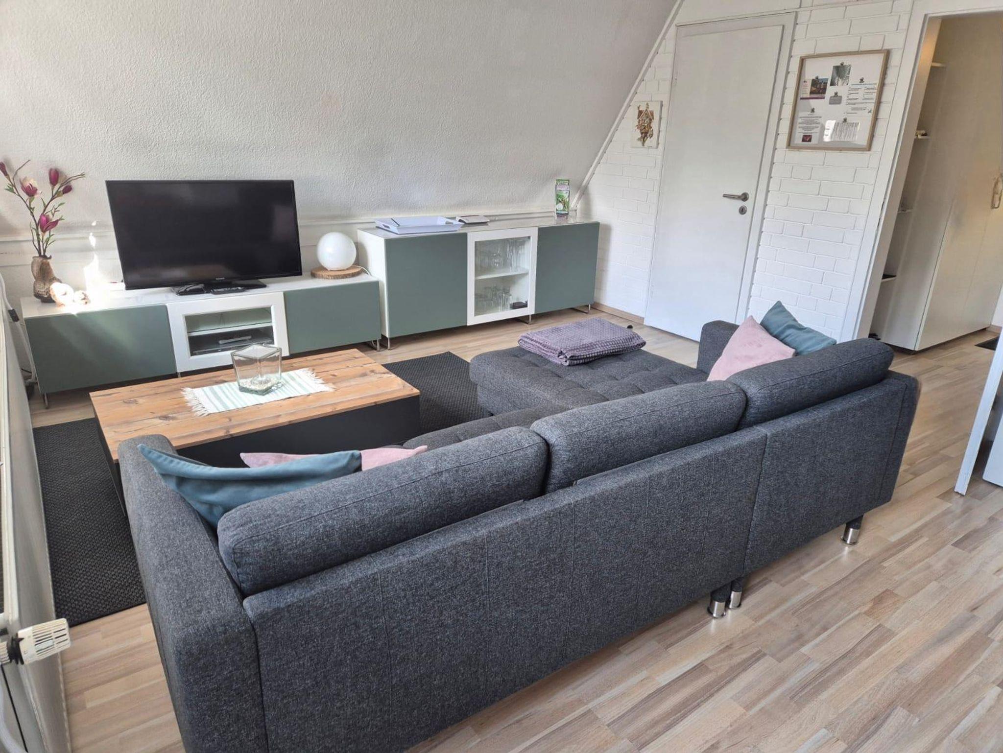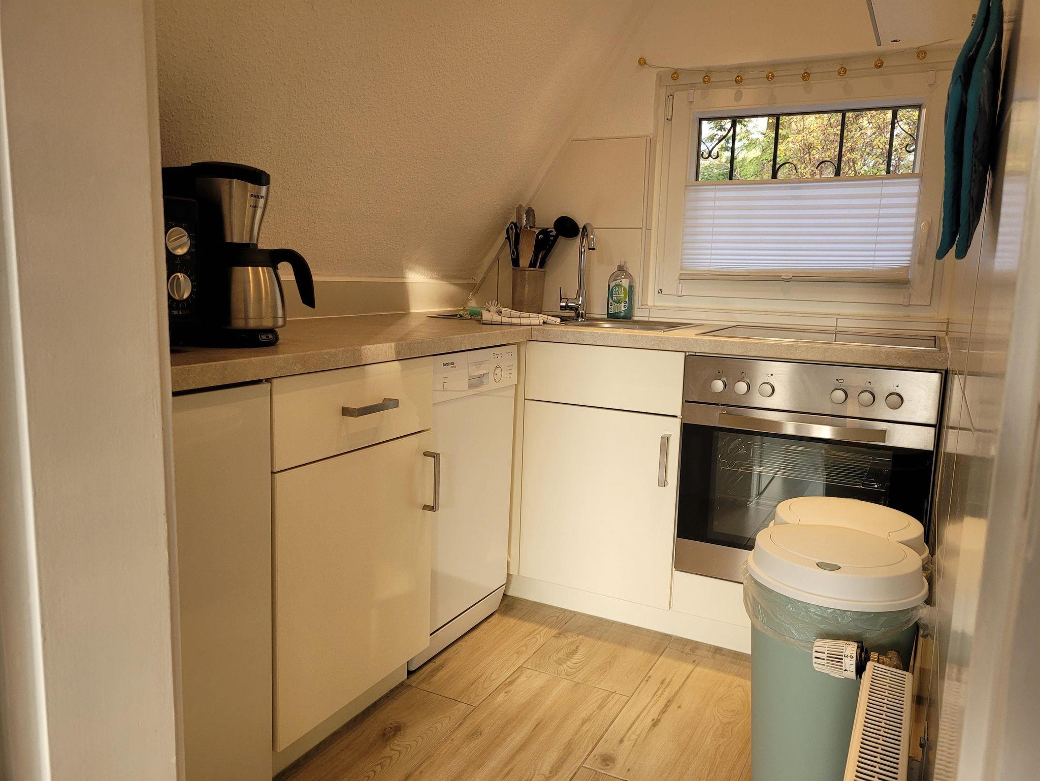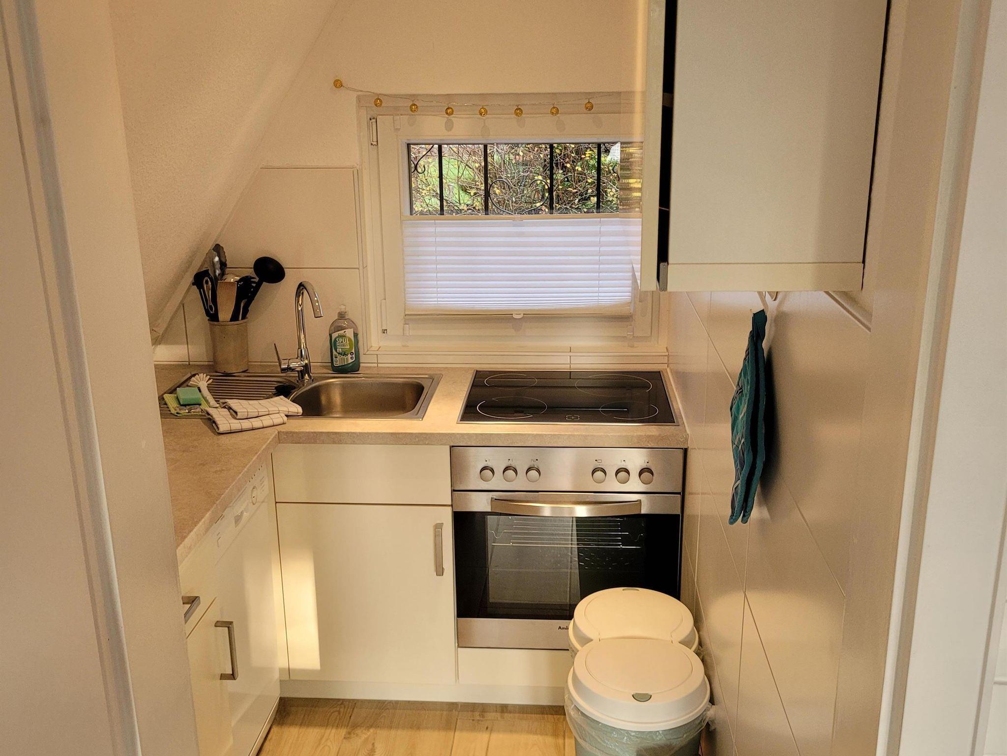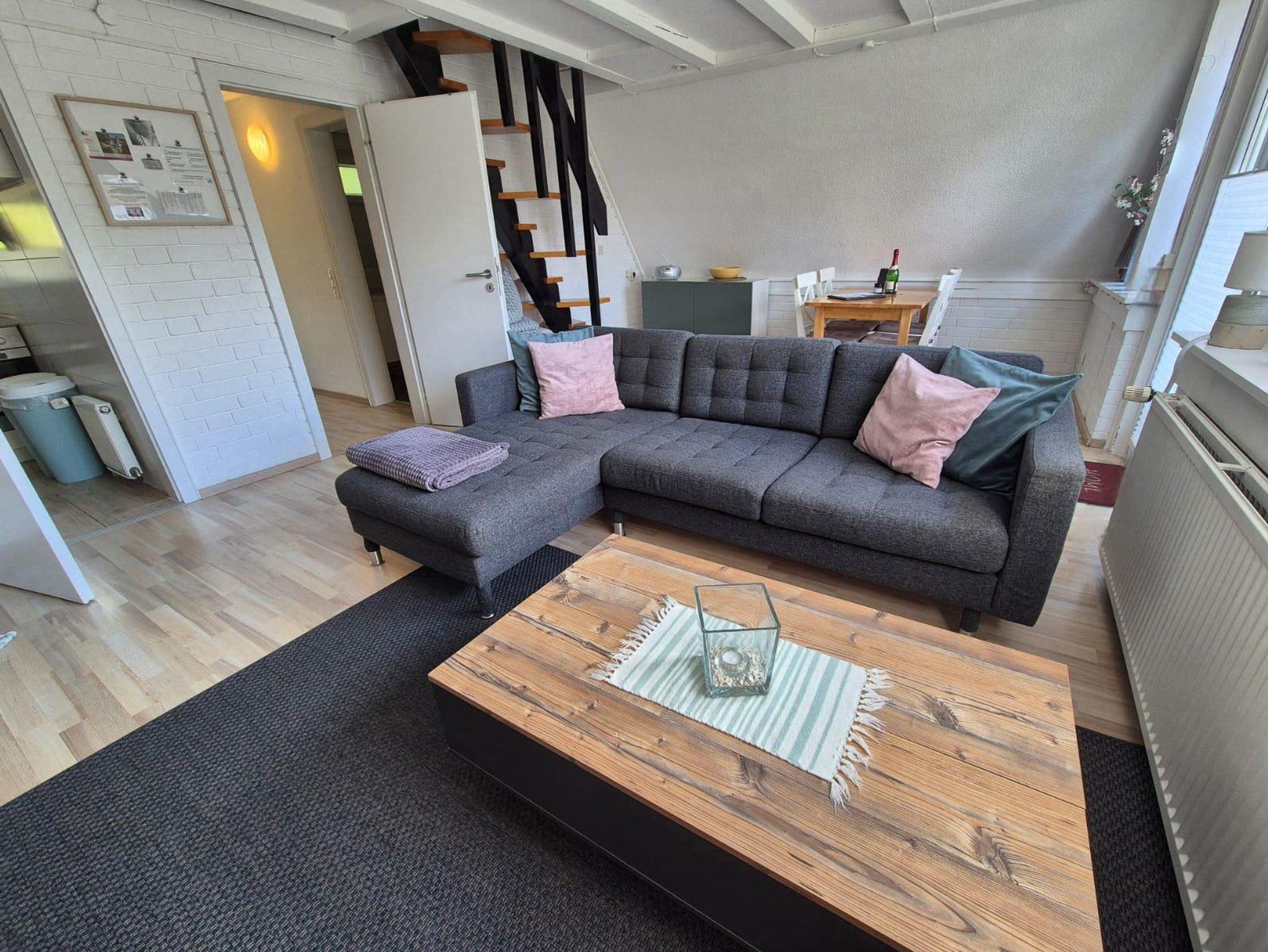 Das hell und modern eingerichtete Ferienhaus verfügt im Eingangsbereich über einen Flur, der neben dem Duschbad zum Wohn- / Esszimmer führt. Von dem Wohnzimmer erreichen Sie die kleine, voll ausgestattete Küche sowie die zwei Schlafzimmer im Obergeschoss. Die Schlafzimmer sind über eine Raumspartreppe zu erreichen.