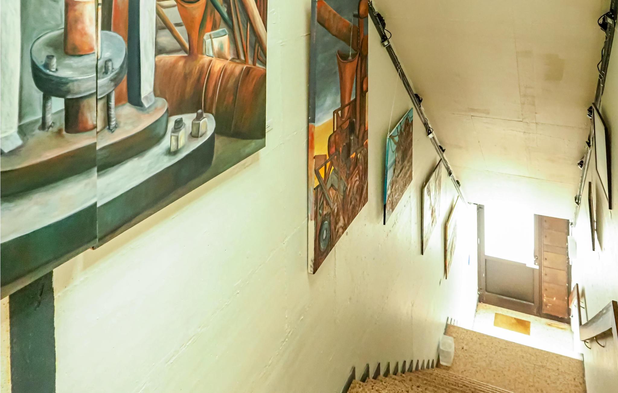 Der Treppenaufgang führt durch eine Kunstgalerie in der es wechselnde Ausstellungen gibt. Dies macht die Ferienwohnung vor allem auch für Kunstinteressierte noch einmal mehr zu einem besonderen Erlebnis. Auch in der Wohnung befinden sich Kunstwerke der Vermieterin und befreundeter Künstler.