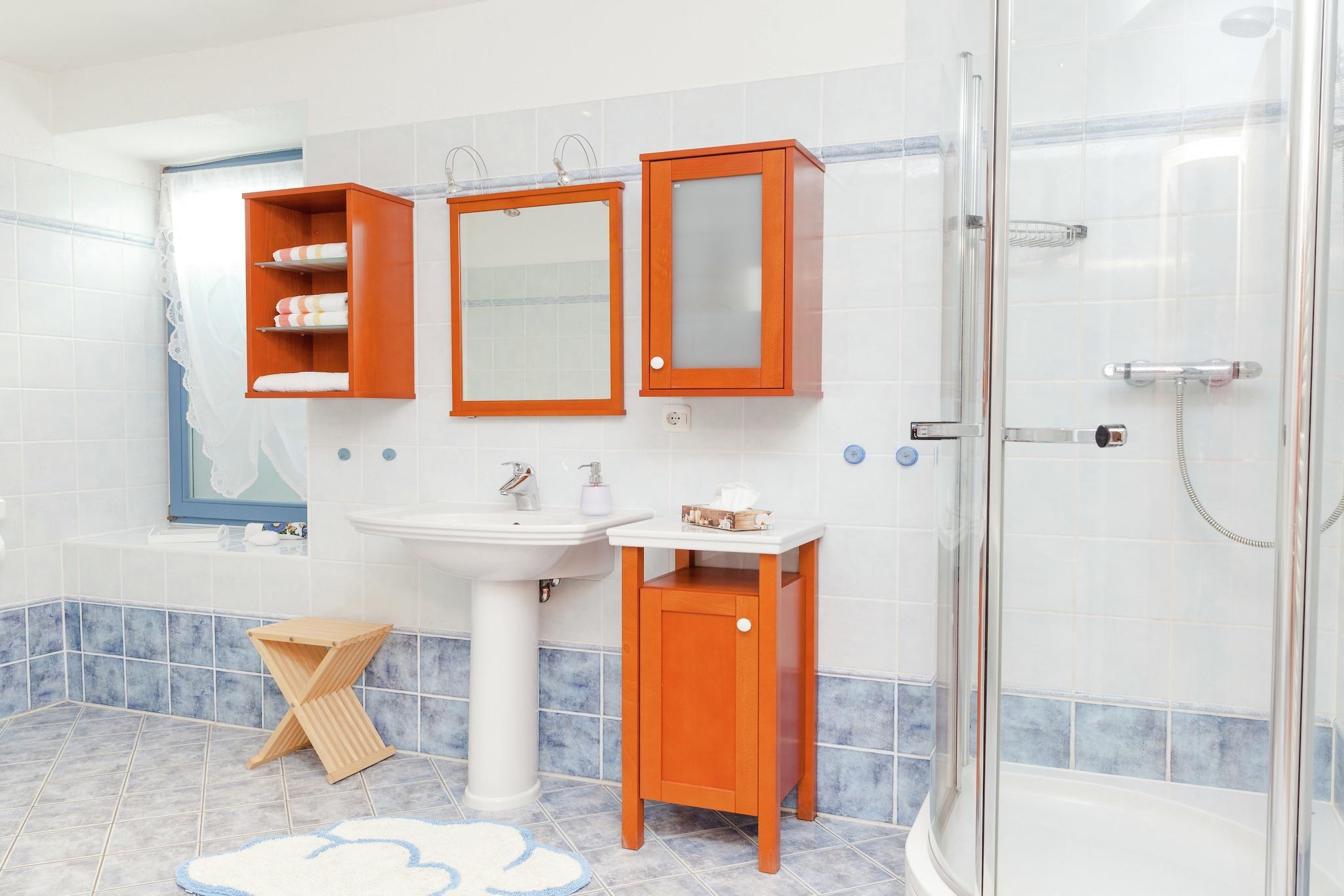 Diese gehobene Villa mit 5 Schlafzimmern liegt im ruhigen Dorf Michelbach (Schotten) und bietet Platz für bis zu 15 Gäste. Sie ist ideal für mehrere Familien oder große Gruppen. Das Haus verfügt über eine private Terrasse, einen Holzofen und eine Infrarotsauna und bietet gemütlichen Komfort und Wellness in malerischer Umgebung. Kinder werden den Sandkasten, die Spielbereiche sowie den verfügbaren Hochstuhl und das Kinderbett lieben, während Erwachsene auf der möblierten Terrasse entspannen oder abends grillen können. Die Villa verfügt über eine voll ausgestattete Küche, mehrere Badezimmer sowie geräumige Wohn- und Freizeiträume. In der Nähe können Gäste einen See zum Schwimmen und Angeln erkunden, Waldwege sind nur 500 m entfernt und das Stadtzentrum mit Restaurants, Nachtleben und Geschäften ist 2 km entfernt. Öffentliche Verkehrsmittel sind 300 m vom Anwesen entfernt und bieten eine gute Anbindung an lokale Sehenswürdigkeiten.