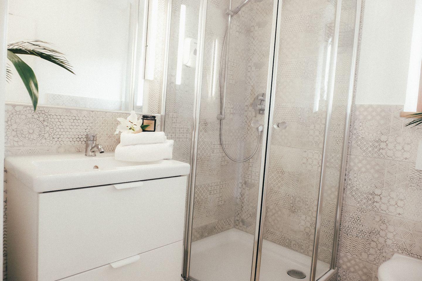 Das Bad ist hell, modern und bietet Dusche & WC. Warme Natursteinfliesen und eine klare Einrichtung machen Luna 2 zu einem angenehm unaufgeregten Rückzugsort für alle, die es unkompliziert, komfortabel & alltagstauglich mögen – ohne auf Qualität zu verzichten.