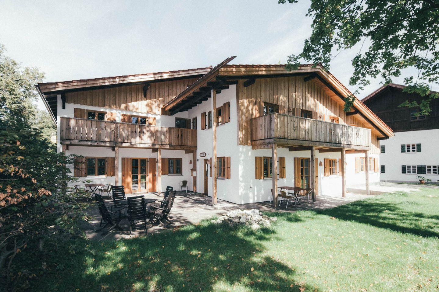 Die große Terrasse mit Blick ins Grüne ist wie gemacht für ein Frühstück in der Morgensonne oder entspannte Stunden an der frischen Luft – so fühlt sich das Allgäu wie Zuhause an.