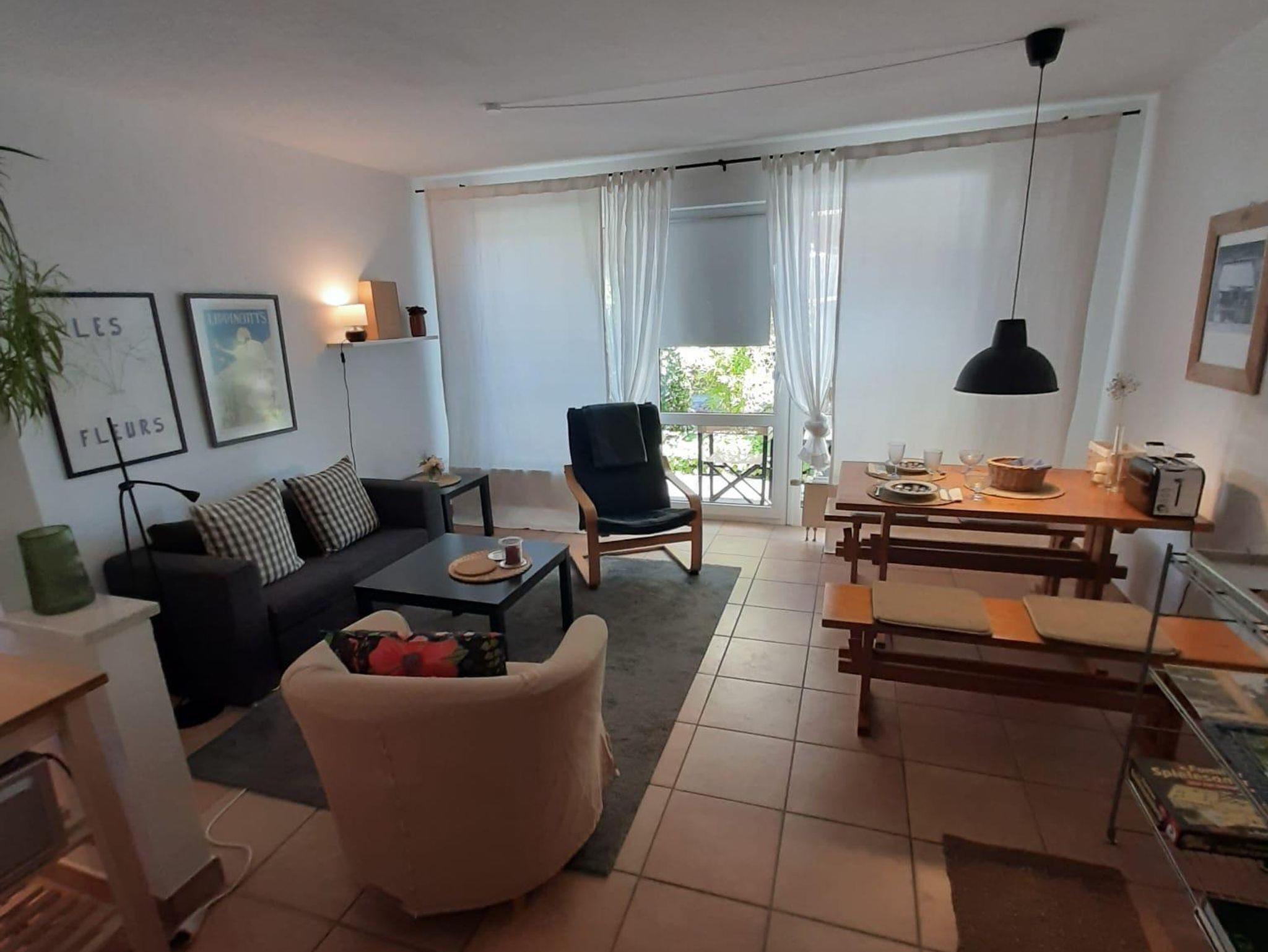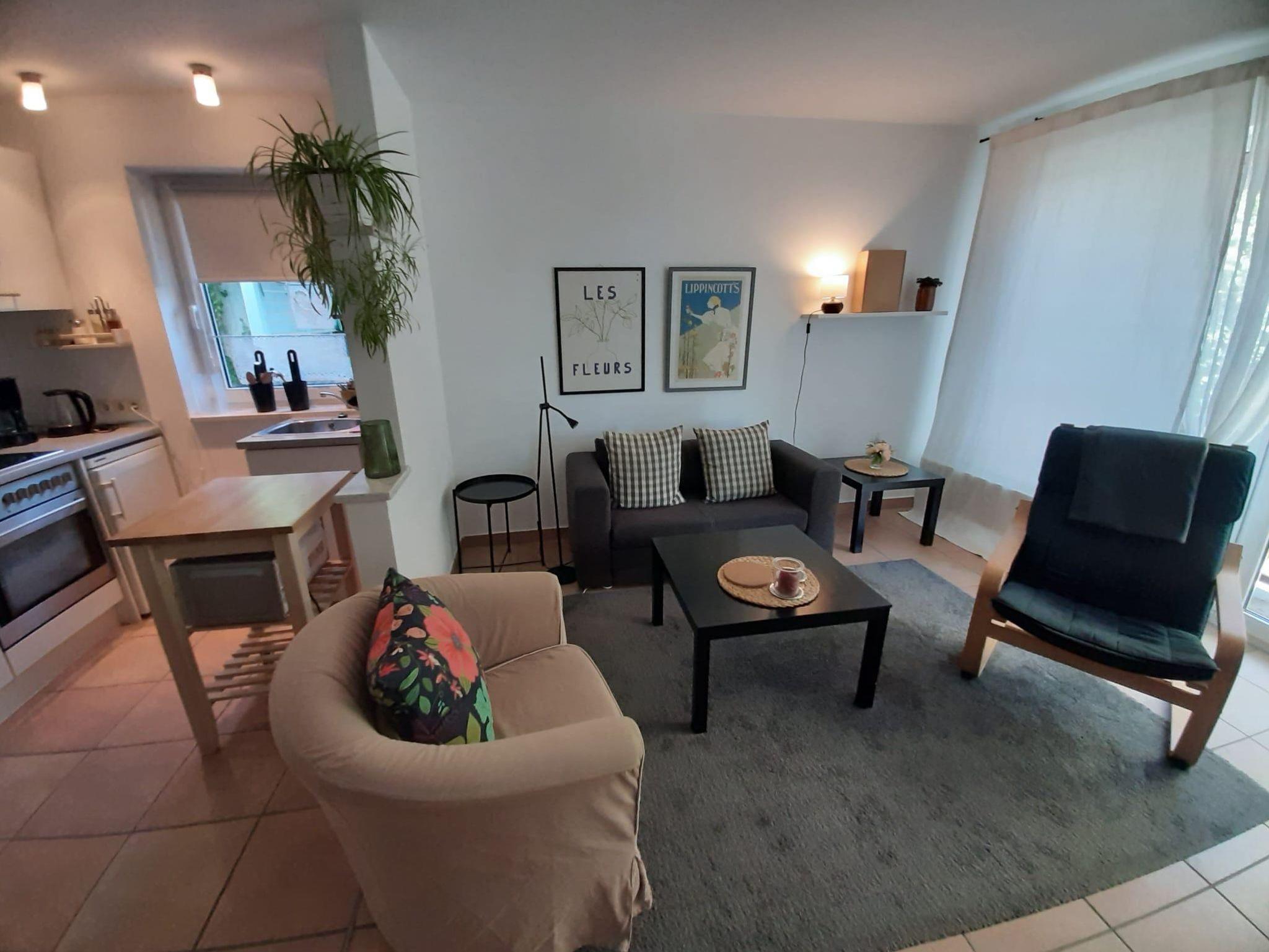 Auf 50 m² finden Sie ein Wohnzimmer mit Küchenzeile, Essbereich und TV, ein separates Schlafzimmer mit 2 Einzelbetten und ein Duschbad. Die Wohnung hat einen eigenen Eingang und eine Südterrasse mit Sitzgelegenheit.