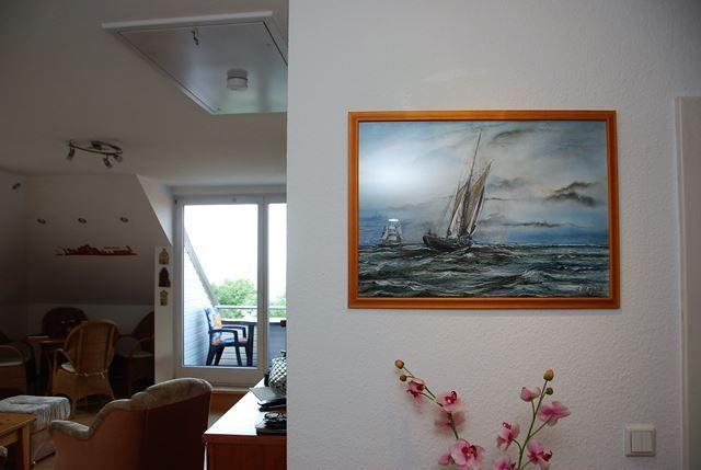 Vom Wohnbereich haben Sie außerdem Zugang zum möblierten Balkon, der Ihnen einen unverbaubaren Blick auf das Meer bietet. Wellenrauschen und Möwengeschrei sind hier inklusive.