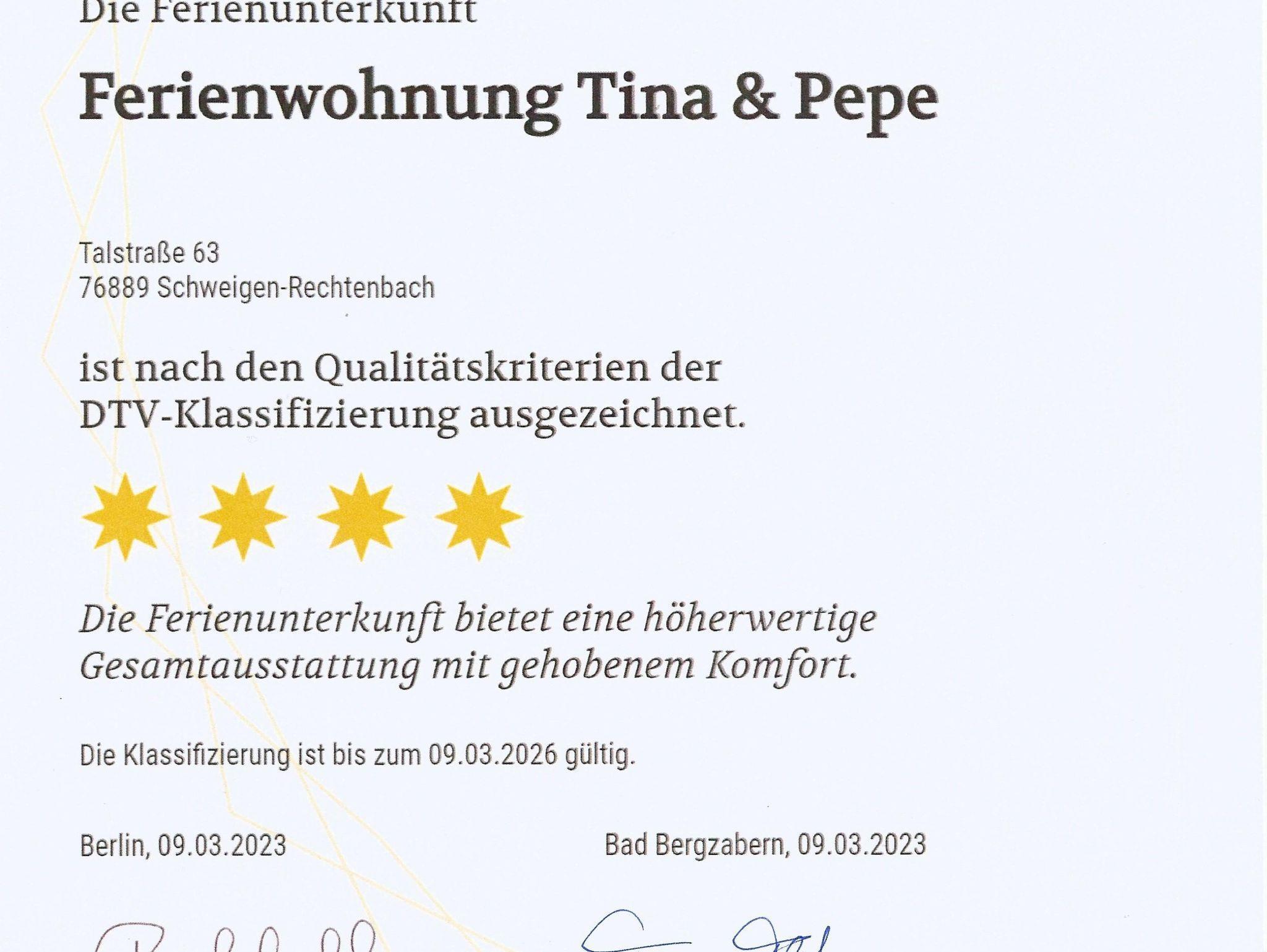 Anreise ab 14.00 Uhr / Abreise bis 10.00 Uhr