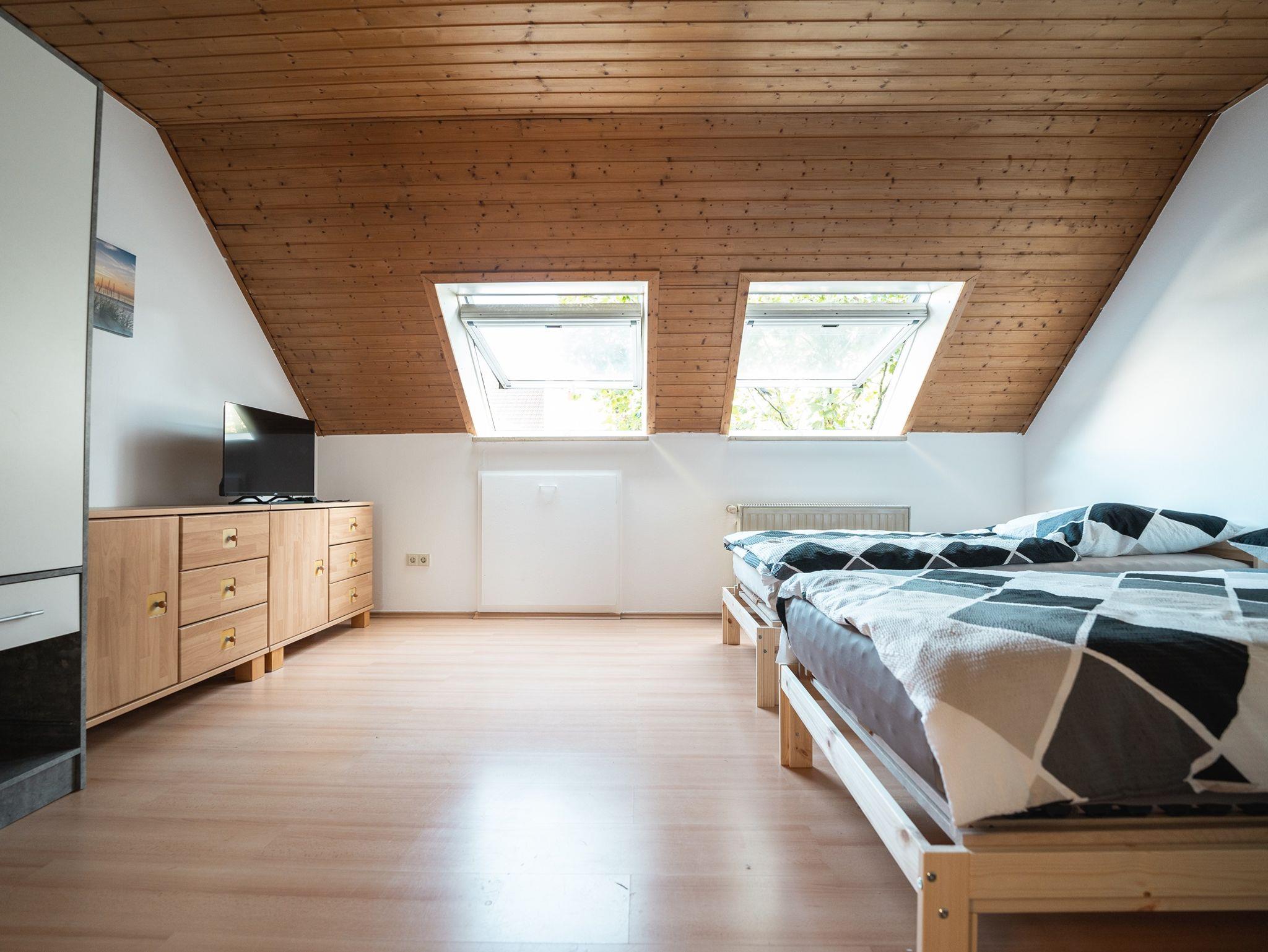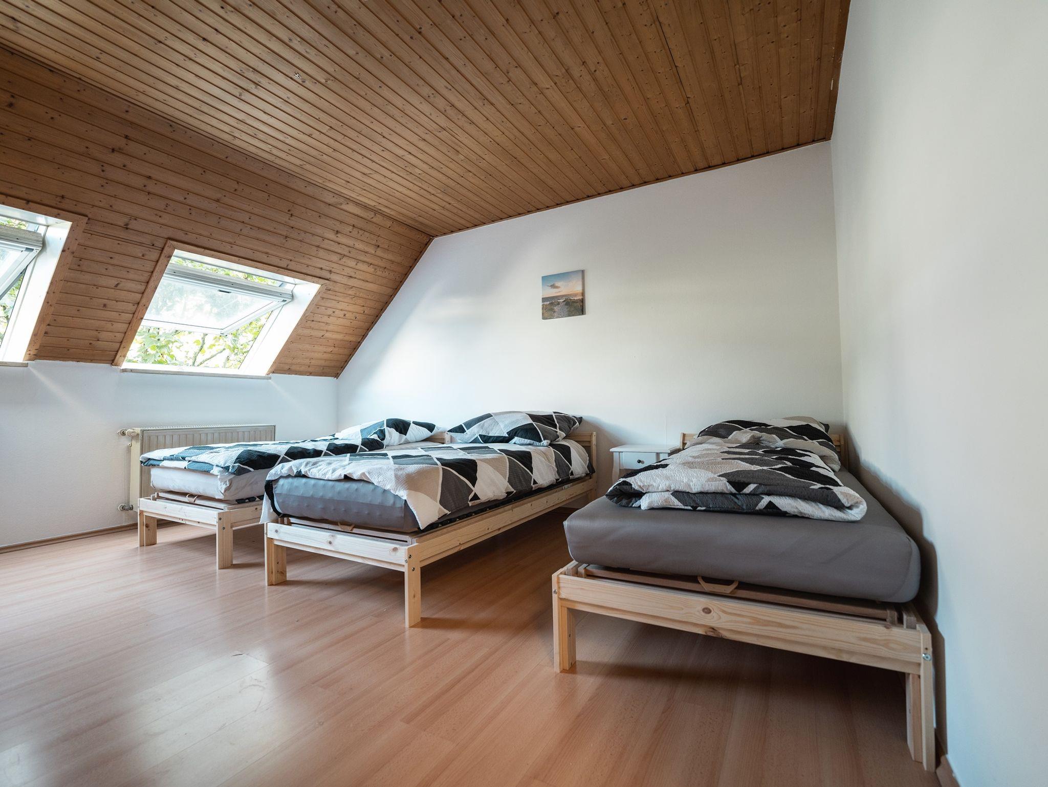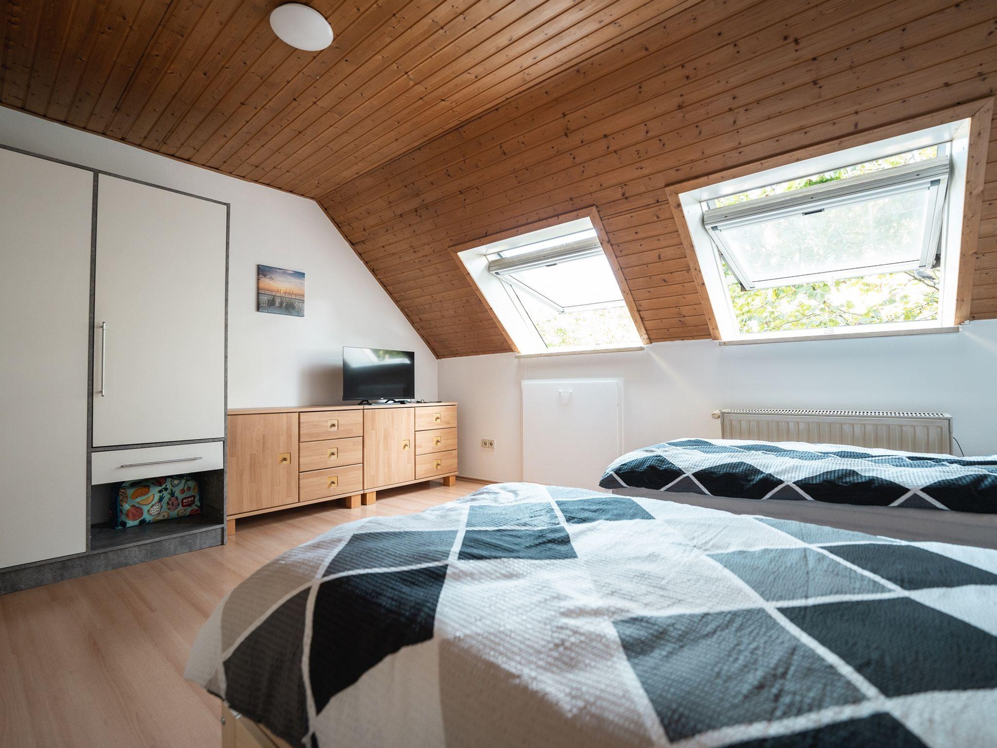Genießen Sie Ihren Aufenthalt in dieser gemütlichen Dachgeschosswohnung mit einer Fläche von 65 qm. Sie verfügt über zwei gemütliche Schlafzimmer, die jeweils mit zwei Einzelbetten ausgestattet sind, ideal für Familien oder Freunde. Die voll ausgestattete Küche lädt zum gemeinsamen Kochen ein. Das Badezimmer verfügt über Dusche und WC. Perfekt für erholsame Ferien!