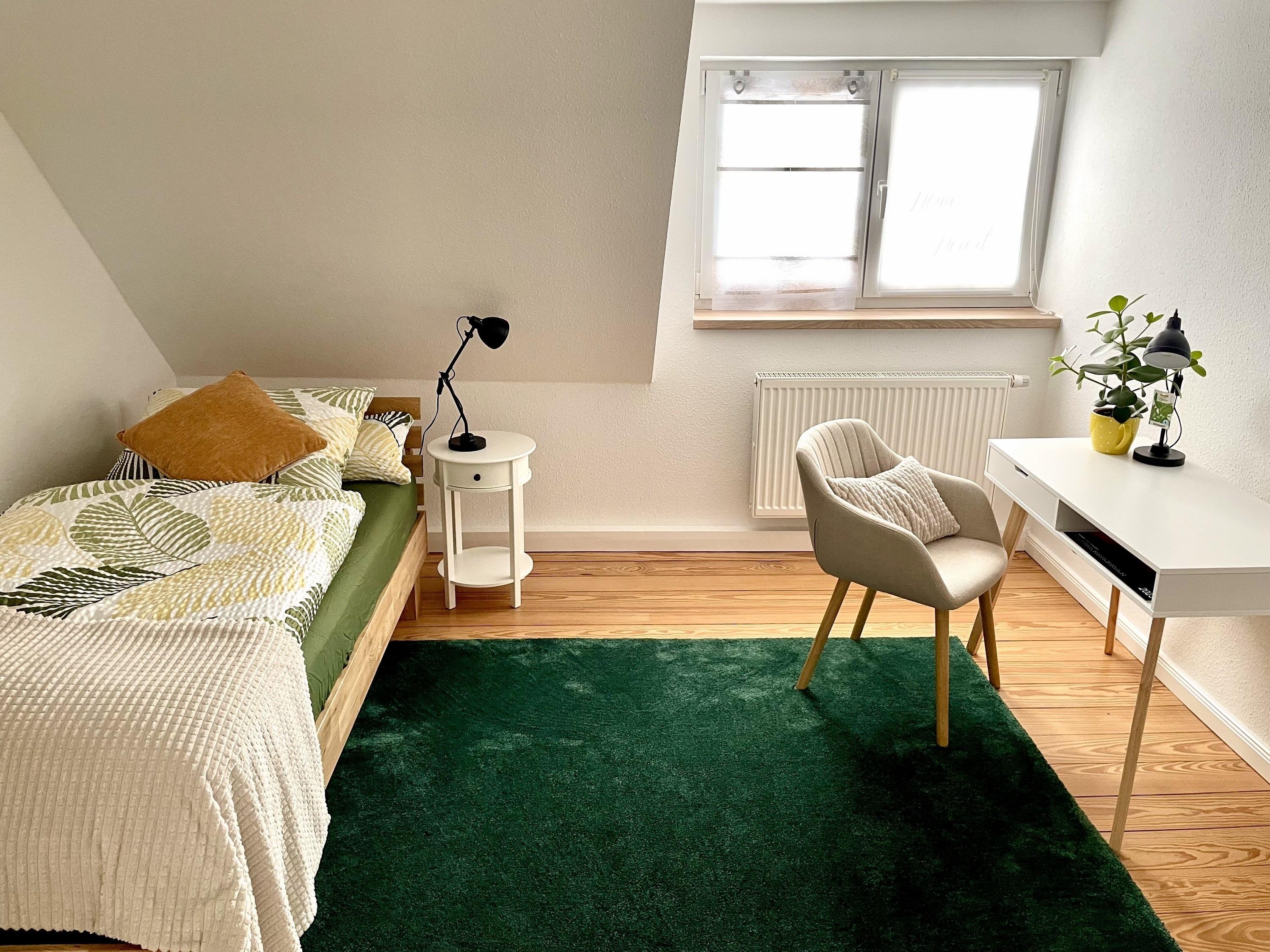 Mit unseren individuell eingerichteten Schlafzimmern im Dachgeschoss bieten wir Ihnen Platz für bis zu 5 Schlafgäste.