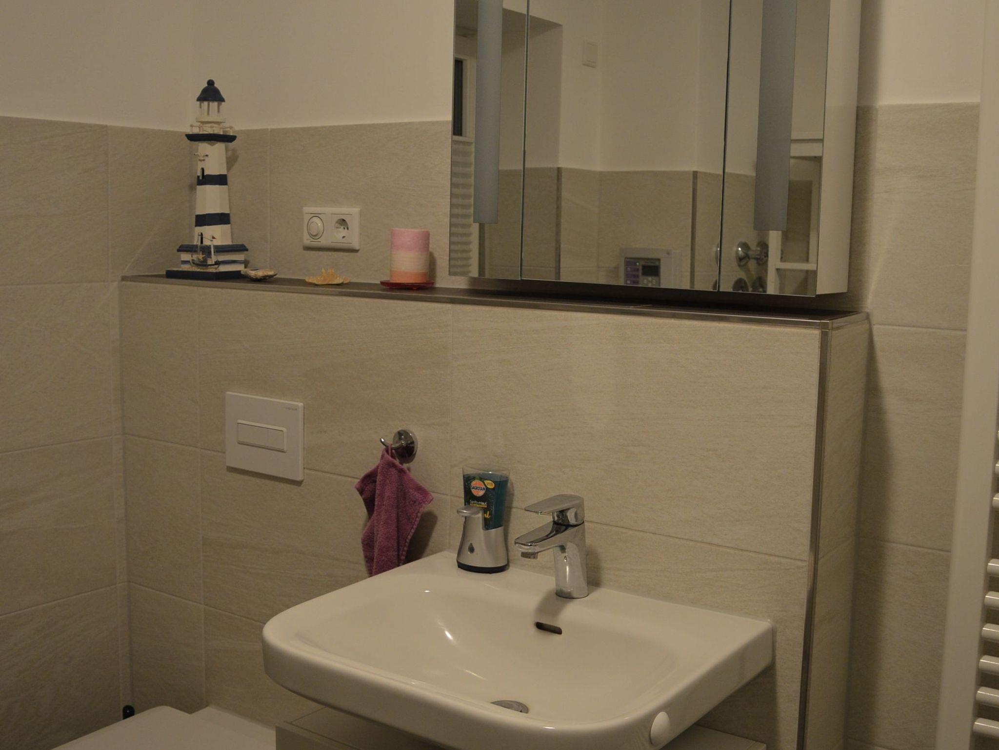 Wir bieten ihnen in unserer Ferienwohnung 2 Schlafzimmer, ein Bad mit ebenerdiger Dusche, eine voll ausgestattete offene Küche mit Essbereich und angrenzendem Wohnzimmer.