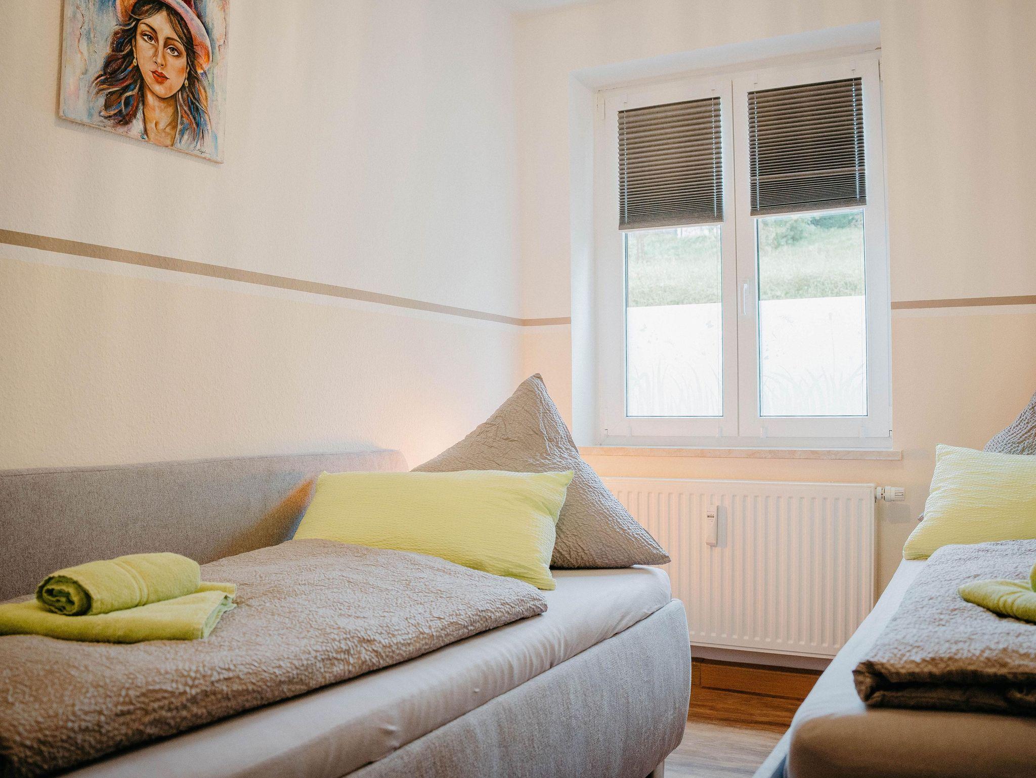 Die Ferienwohnung Erik befindet sich rechts im Erdgeschoss und bietet auf 65 m² viel Raum für entspannte Familienzeit – ideal für bis zu 4 Personen und ein Kinderbett. Manchmal braucht es einfach eine kleine Auszeit. Einen Ort, an dem ihr die Tür hinter euch schließt und sofort spürt: Hier dürfen wir sein. Genau dieses Gefühl erwartet euch in der Ferienwohnung Erik in der Kunstblumenstadt Sebnitz. Liebevoll gestaltet, gemütlich eingerichtet und perfekt für Familien, die sich nach Erholung, Nähe und gemeinsamen Momenten sehnen.Zwei separate Schlafzimmer sorgen für erholsamen Schlaf:ein großes Doppelbett und zwei gemütliche Einzelbetten. Der helle Wohnbereich lädt zum Kuscheln, Spielen und Entspannen ein. In der voll ausgestatteten Küche entstehen eure kleinen Urlaubsrituale – vom Frühstück mit frischen Brötchen bis zum entspannten Abendessen nach einem erlebnisreichen Tag.Und wenn abends Ruhe einkehrt, spürt ihr: Genau so fühlt sich Urlaub an.