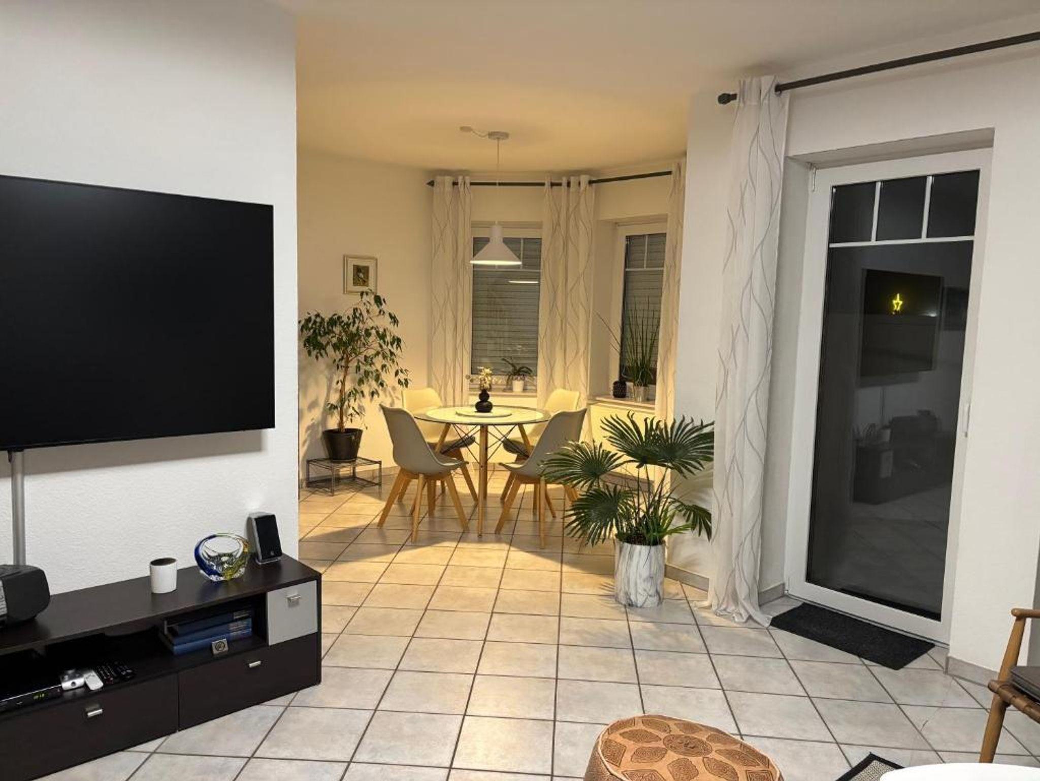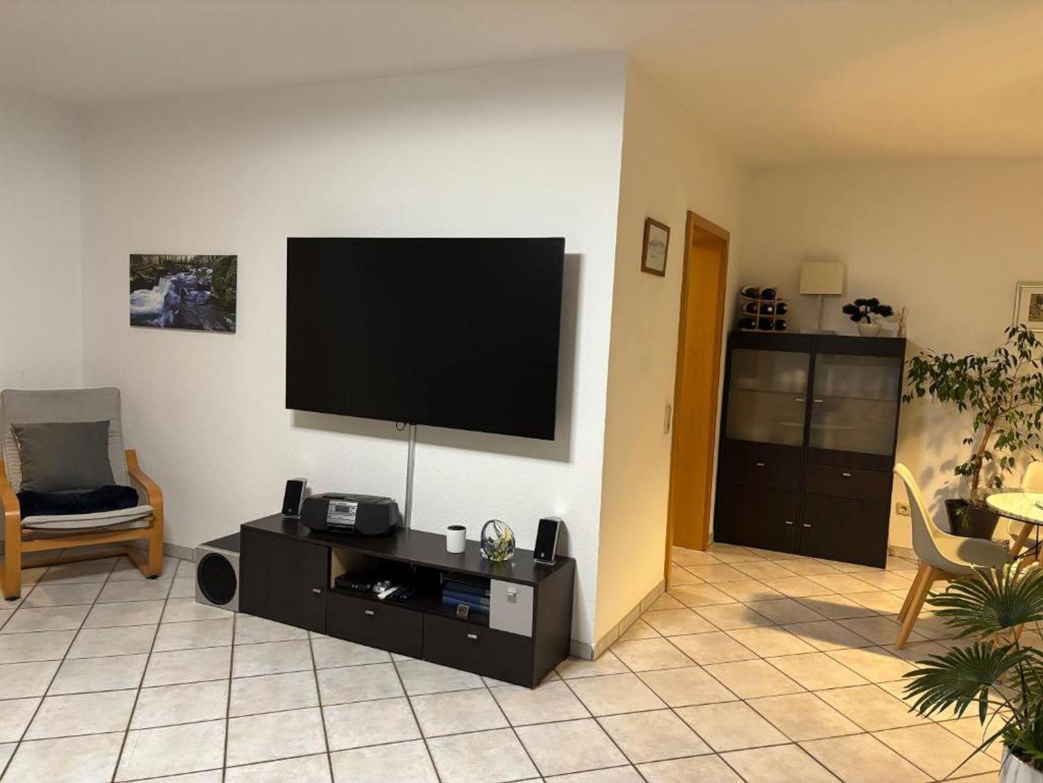 Sie wohnen in einer schönen Doppelhaushälfte, die über eine Treppe zu erreichen ist. Wohn- und Essbereich, Küche sowie Gäste-WC befinden sich im Erdgeschoß. Die beiden Schlafräume mit großzügigem Bad sind im Obergeschoß.