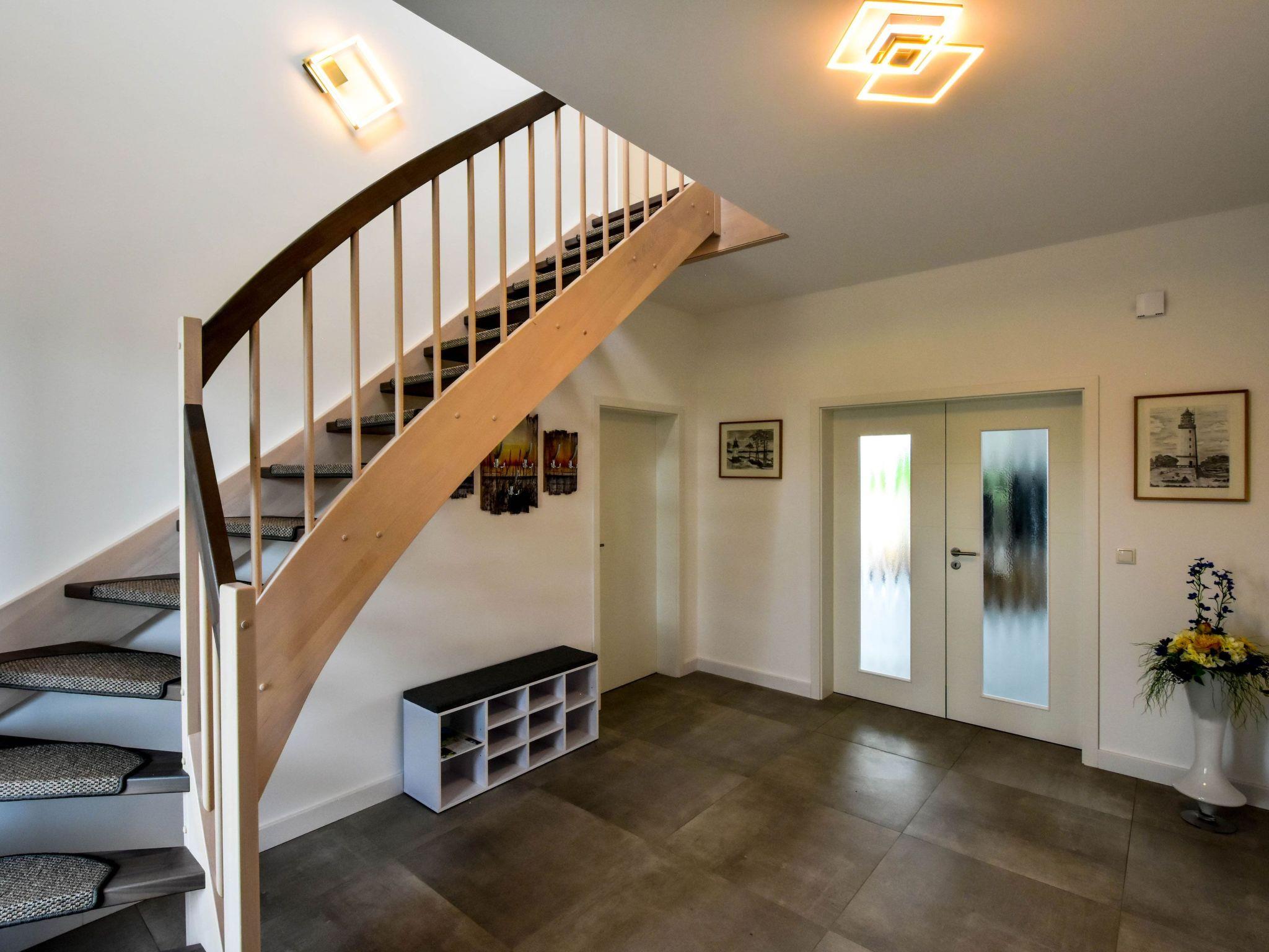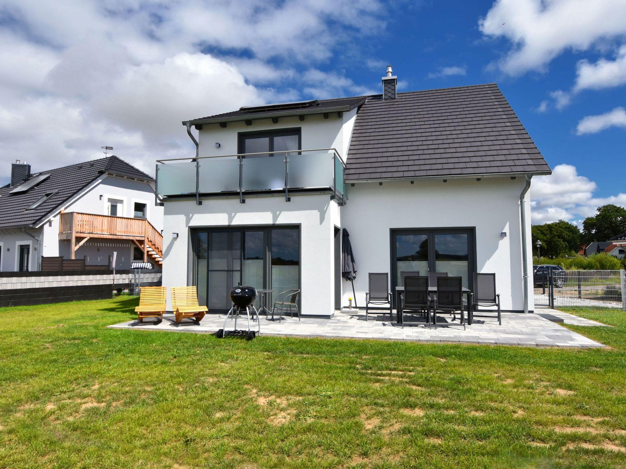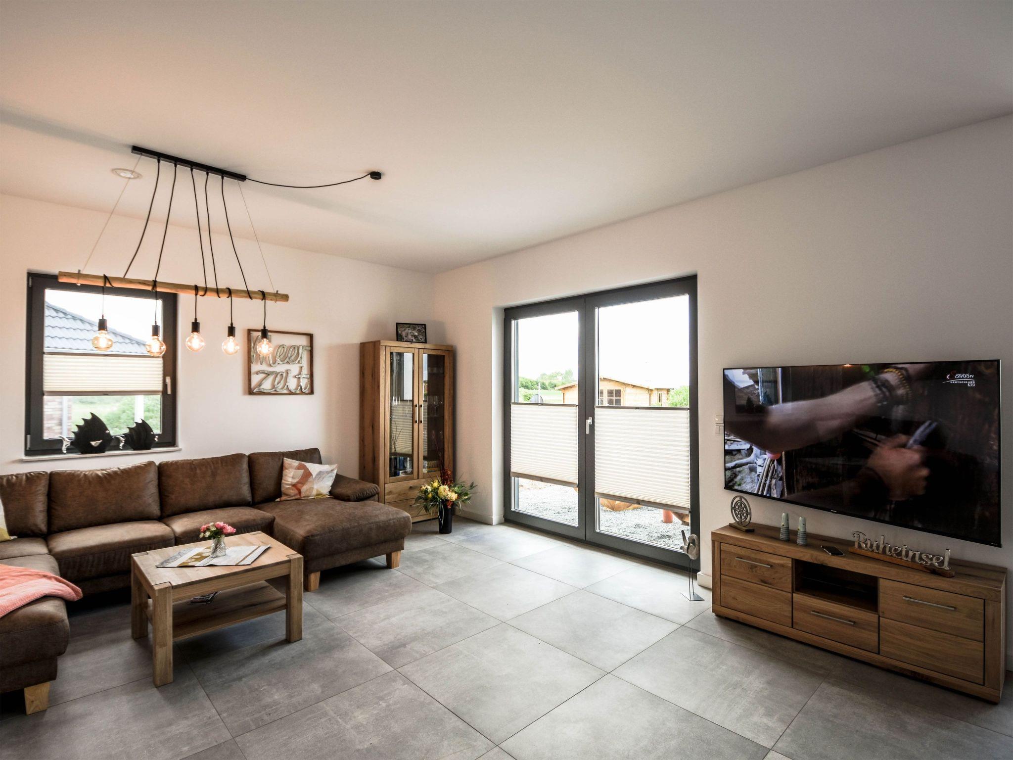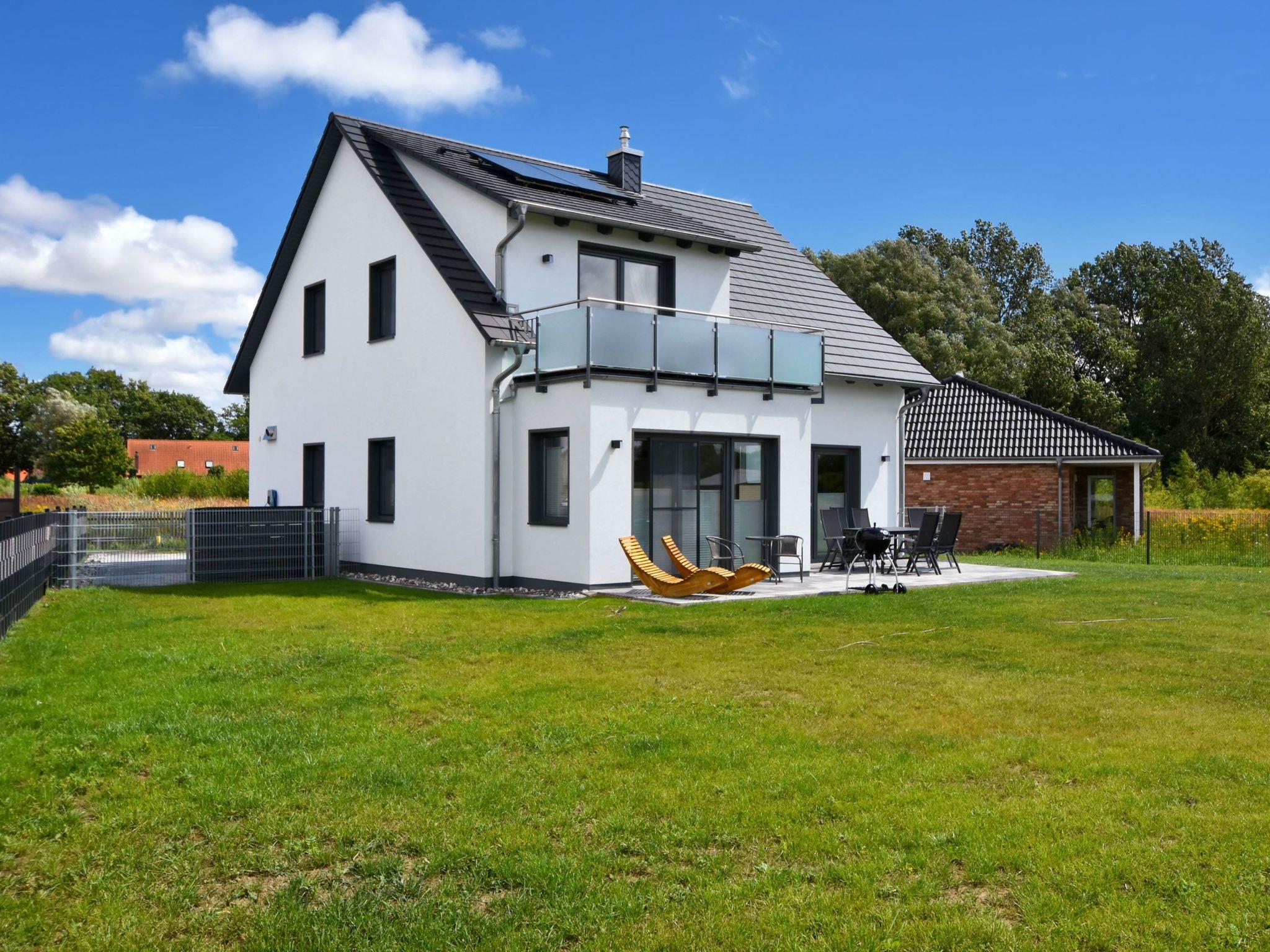 Erleben Sie traumhafte Sonnenuntergänge von der Terrasse oder Balkon im modernen Stil eingerichtet bietet unser Domizil 4 Schlafzimmer mit bequemen Boxspringbetten, 2 Bäder, eine Sauna, moderne Küche mit Kochinsel, Gaskamin mit sofortiger Wärme, Flammenspiel per Fernbedienung einstellbar – täuschend echtes Flammenbild. Wir haben im ganzen Haus Fußbodenheizung. In den Zimmern Designbelag, die Bäder und der Wohnbereich ist gefliest. Machen Sie sich das bei einem schönen Grillabend gemütlich und verweilen Sie auf unserem Balkon oder der Terrasse im Liegestuhl und beobachten im Frühjahr oder Herbst den Kranichflug. Wandern Sie zu unserer Wegkirche in Richtung Landow (2 km).