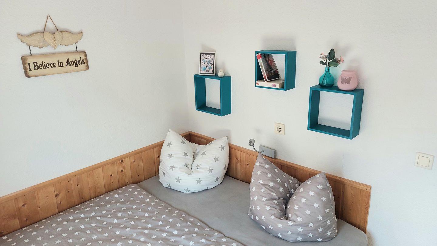 - im Schlafzimmer befindet sich ein Doppelbett (160 x 200 cm --> geteilte Matratze)