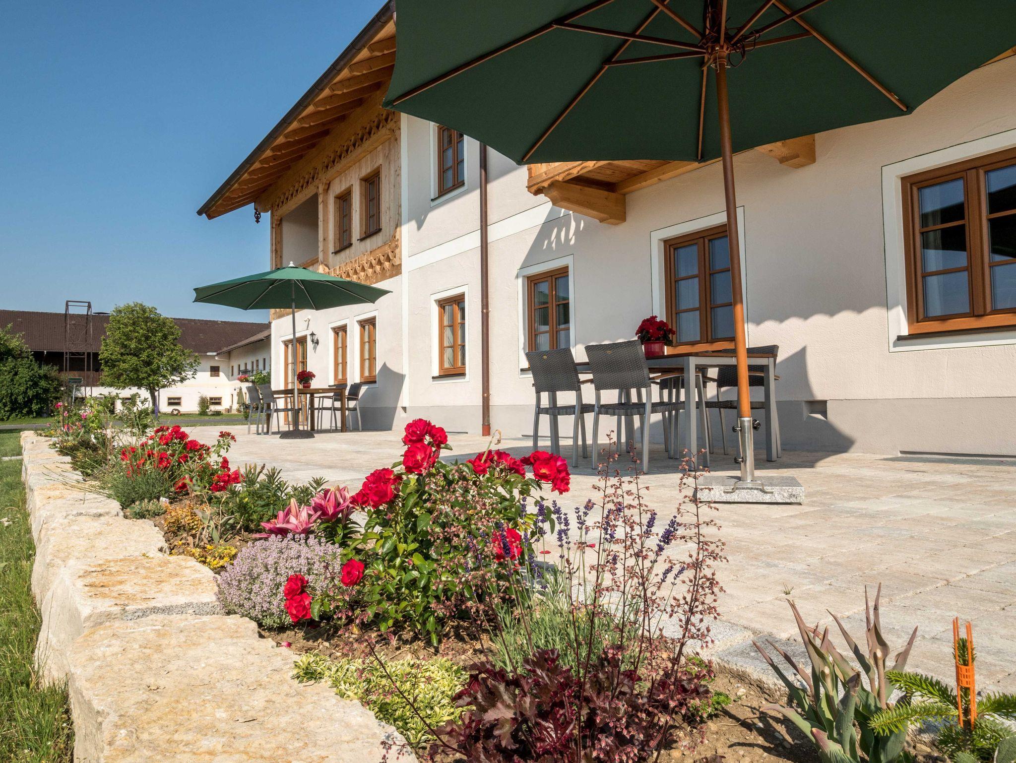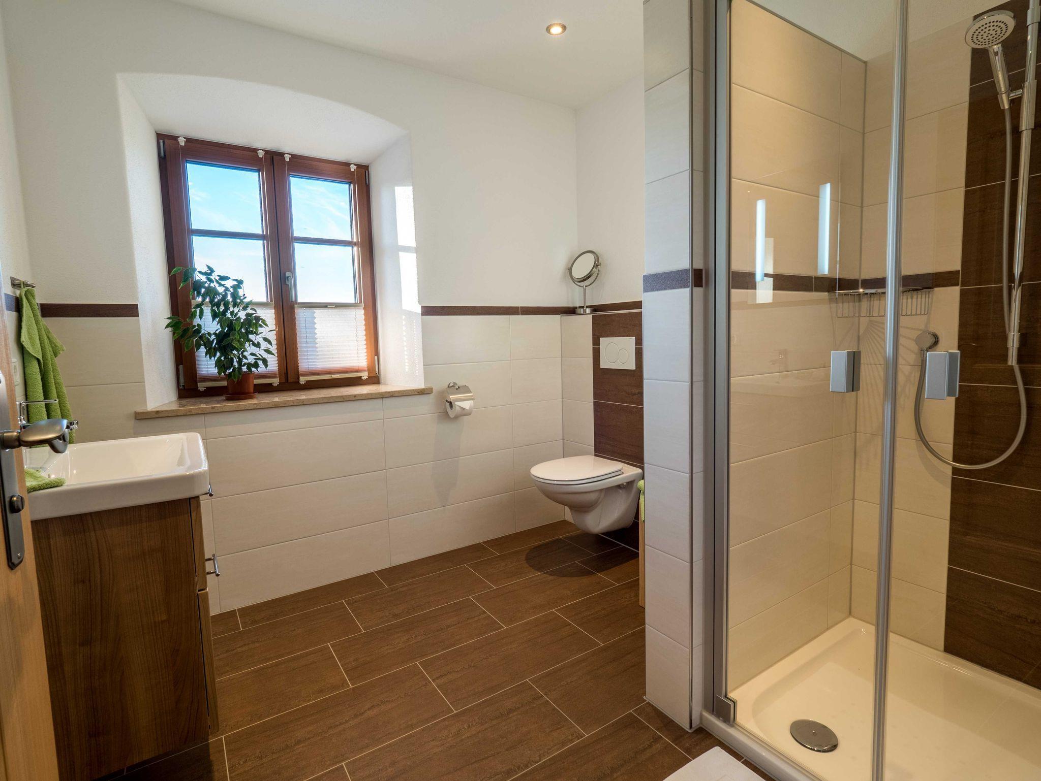 Großzügige Neubau-Fewo im 1. Stock mit Wohn- und Kochbereich, 2 Schlafzimmern, Bad mit Dusche, separatem WC und eigenem südseitigem Balkon. Zusätzlich gibt es einen Aufenthaltsraum mit Terrasse und direktem Zugang zum Garten. Feuerstelle mit Grillmöglichkeit, separater Eingang, Bettwäsche und Handtücher sonderheiten: Große Terrasse mit Liegewiese, keine Haustiere, Anbindung an verschiedene Radrundwege, Nichtraucher-Wohnung, W-Lan, Milchviehbetrieb im Haupterwerb, Spülmaschine in der FeWo, Waschmaschine zur Einzelnutzung im Aufenthaltsraum im Erdgeschoss, Hochstuhl, Parkplatz am Haus